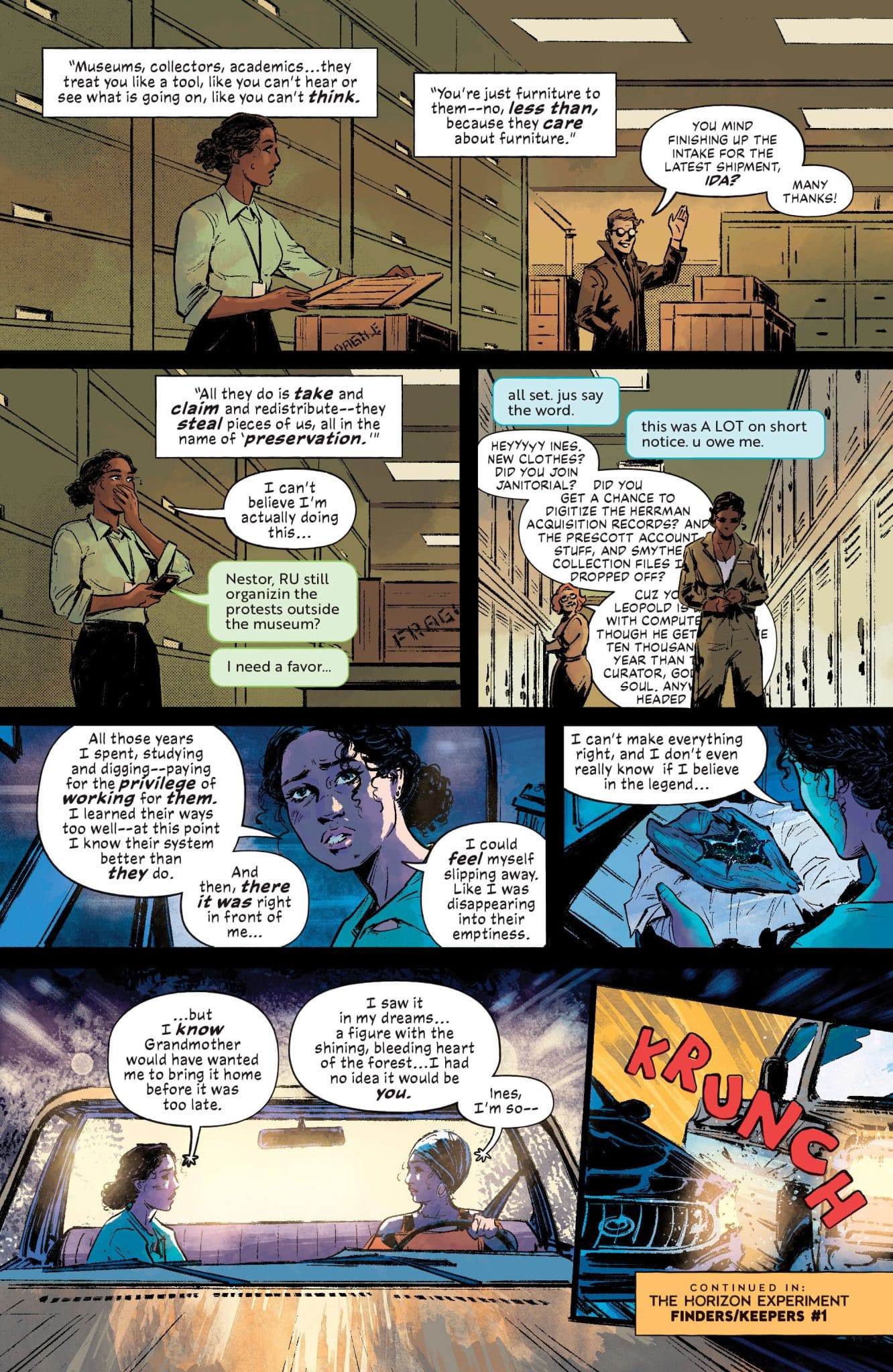 Powerhouse comic book writer Vita Ayala partnered up with on-the-verge star artist Skylar Patridge for The Horizon Experiment: Finders//Keepers, an action-adventure one-shot that twists the genre in a way that’s never been done before. The comic is a reverse Indiana Jones story that follows Puerto Rican archeology grad student Ines Guarua, who plans to steal an important cultural artifact from a famous museum in order to bring it back home to where it belongs.