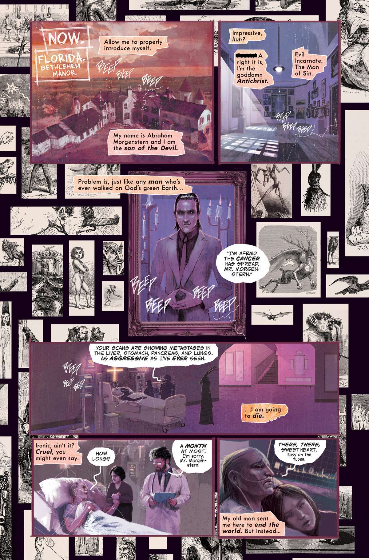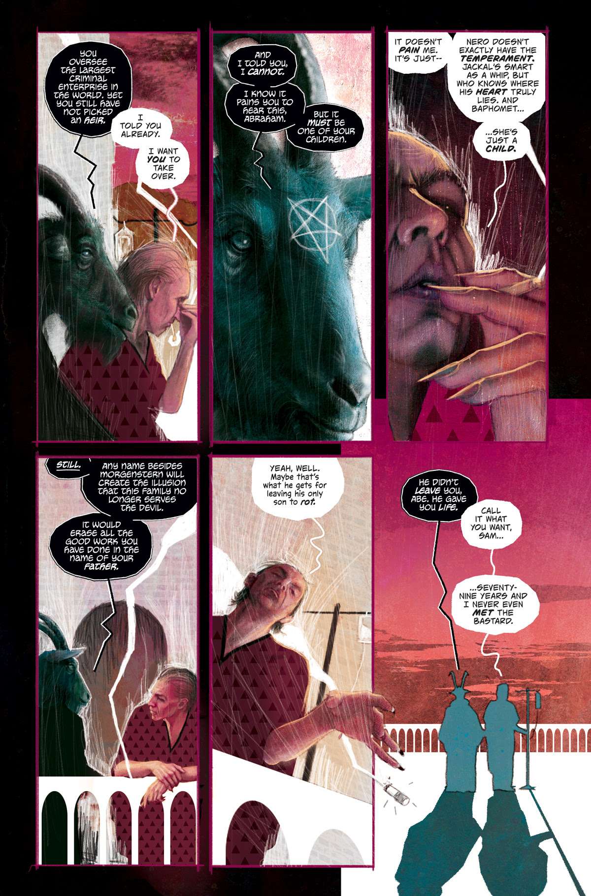 Abraham “Abe” Morgenstern, the son of Satan, has one month to live. Before he dies, he must decide which of his three wayward children—volatile narcissist Nero, conflicted field operative Jackal, or troubled schoolgirl Bee—will inherit his shadowy empire. But will Abe ever be able to truly cede control of the Apocalypse? Or does the Antichrist have something else up his sleeve… The Infernals #1 introduces a classic mob story but delivers a twist as to who’s really in charge.