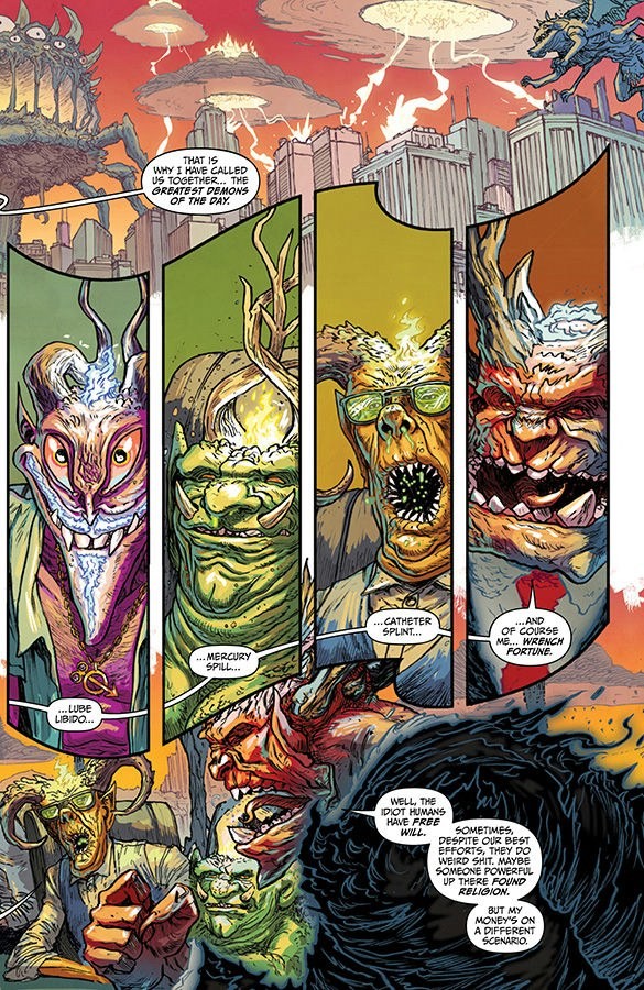 Browne’s art and colors drive home the frustration and monotony of trying to survive as an adult. Whether on Earth or in hell, the mundanity will kill you slowly and surely. I also appreciate Browne emphasizing the humor of the narrative while never dropping the severe stakes. Along with letterer Christopher Crank, the visuals expertly thread life’s naturalism, the darker and grosser aspects of hell, and the hardships they experience.