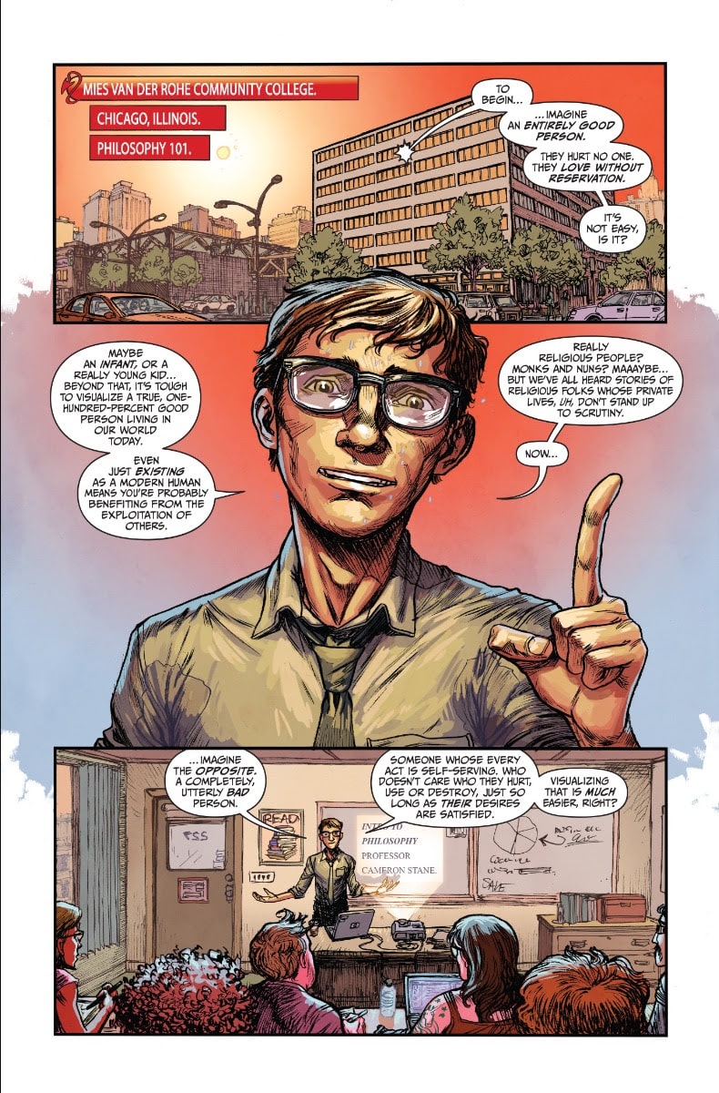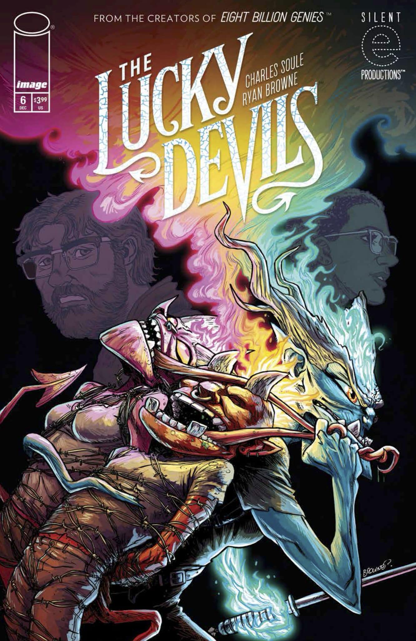 Cam works as an underpaid adjunct philosophy professor, and Starr works as an overworked nurse, and the world seems to be against both of them. Yet their daily problems and hurdles are not random, but because of Collar and Rake, two devils whose sole job is to make their lives a living hell and hope they can climb the infernal corporate ladder. Sensing the system is broken, the two devils cross a significant boundary and recruit their assigned humans to assist them with flipping hell on its head. Charles Soule and Ryan Browne offer a comedic take on good, evil, and what we might do to rise above the ranks of life in The Lucky Devils # 1.