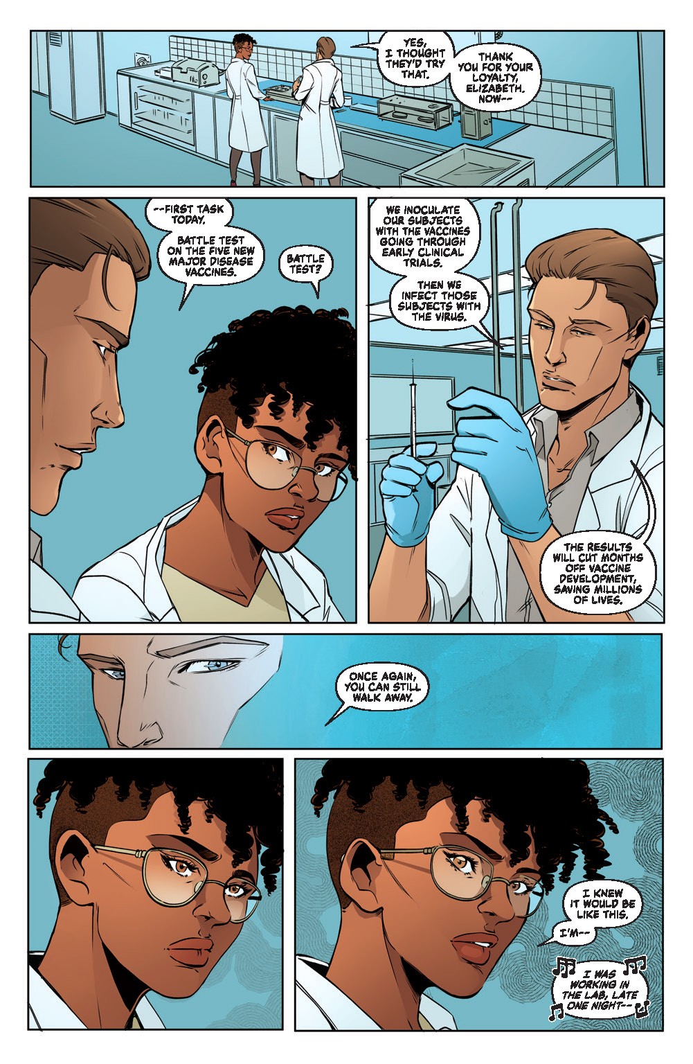 Writer Paul Cornell is delivering a solid update to the classic story of Frankenstein giving it an ethical spin under today’s modern rules. With debates about how quickly the COVID vaccine was developed and conspiracies over shortcuts, the timing of the series feels appropriate. Cornell also delivers enough in the story to make the reader pause. We can understand why Dr. Cleve is enamored, in multiple ways, with Frankenstein. His work is cutting edge and can do real good for the world. Though she doesn’t completely discuss it, you can tell Cleve has a slight pause in how it’s been going about. Though, it’s not enough for her to not participate.