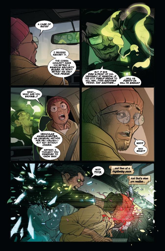 SNAKES IN THE GRASS! Roxxon Construction has a vigilante problem. But whoever this “Thor” is, they know he’s only human… and the people they’ve hired to find him are much, much more. Somewhere in the city, a man with a hammer is being hunted…