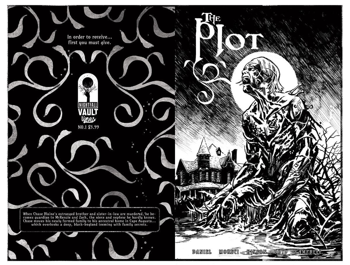 The Plot is written by Tim Daniel and Michael Moreci, drawn by Joshua Hixson, colored by Jordan Boyd, lettered by Jim Campbell.