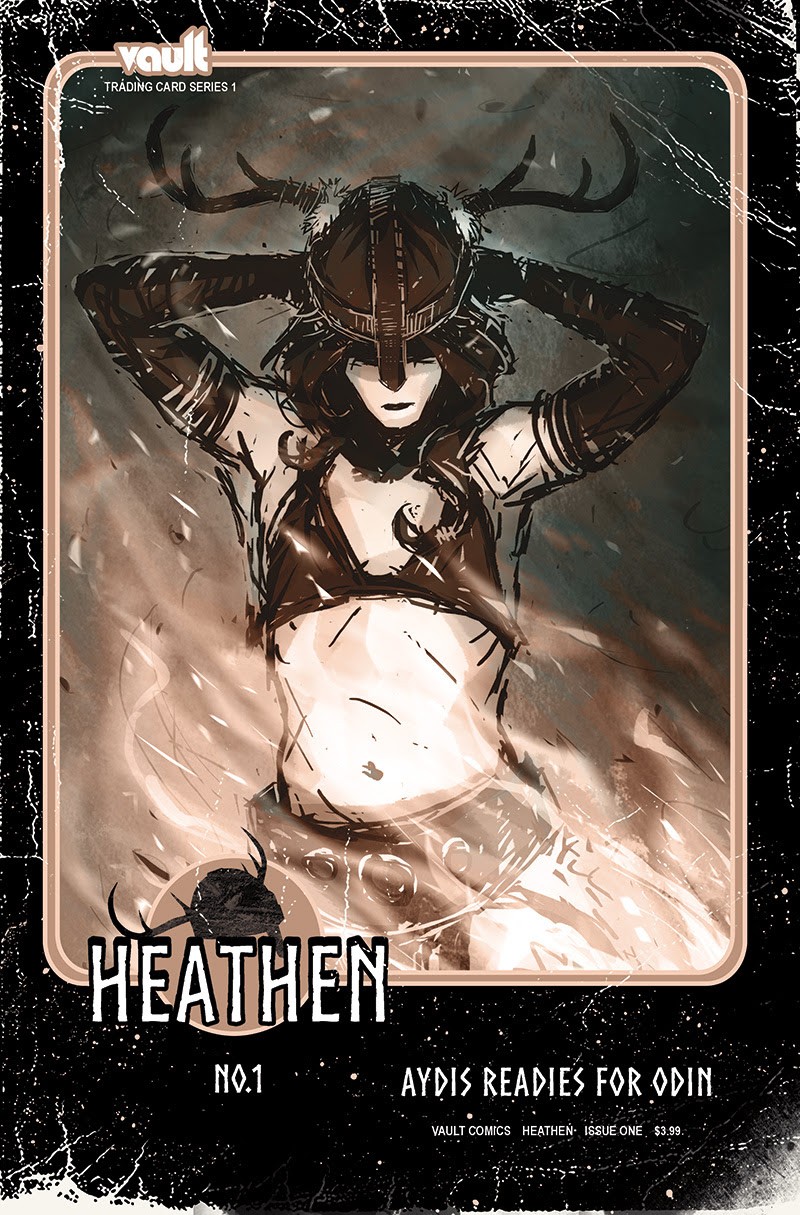 Aydis is a viking, a warrior, an outcast, and a self-proclaimed heathen. Aydis is friend to the talking horse Saga, rescuer of the immortal Valkyrie Brynhild, and battler of demons and fantastic monsters. Aydis is a woman. Born into a time of warfare, suffering, and subjugation of women, she is on a mission to end the oppressive reign of the god-king Odin. Heathen is written, drawn, and colored by Natasha Alterici, and lettered by Rachel Deering.