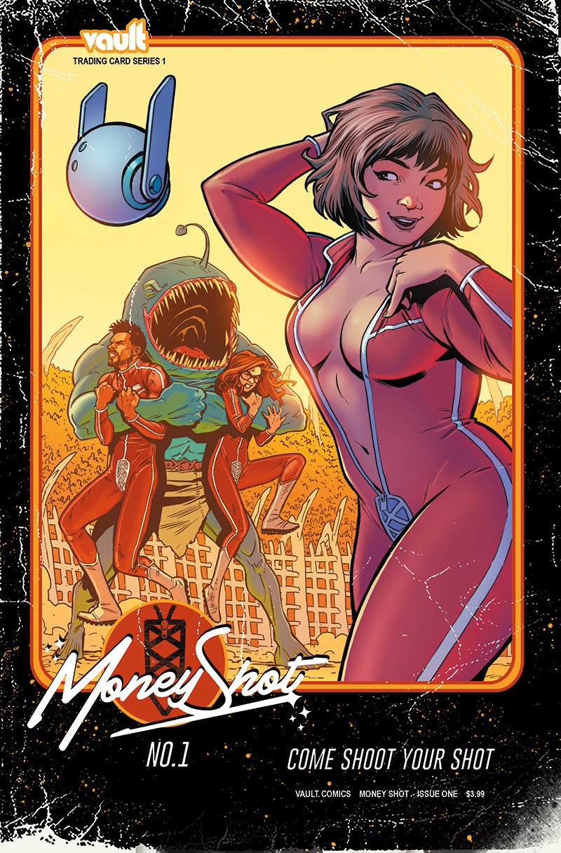In the near future, space travel is ludicrously expensive and largely ignored. Enter Christine Ocampo, inventor of the Star Shot teleportation device with a big idea: She’ll travel to new worlds, engage—intimately—with local aliens, and film her exploits for a jaded earth populace trying to find something new on the internet. Now, Chris and her merry band of scientist-cum-pornstars explore the universe, each other, and the complexities of sex in MONEY SHOT! A story about scientists having sex with aliens for the glory of mankind—and money, written by Tim Seeley and Sarah Beattie, drawn by Rebekah Isaacs, colored by Kurt Michael Russell, lettered by Crank!.