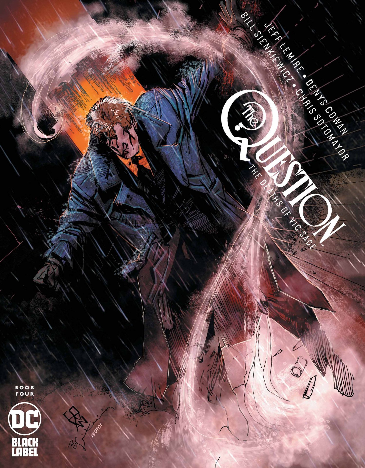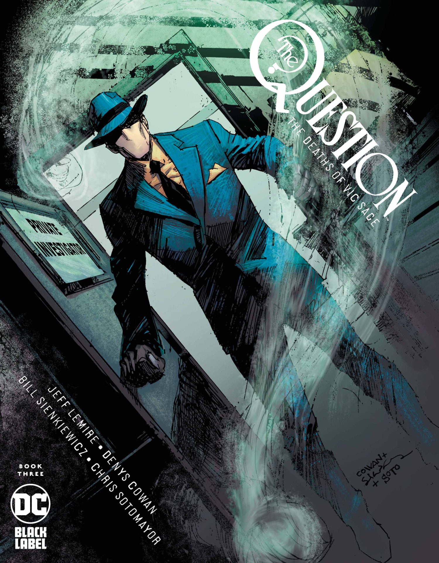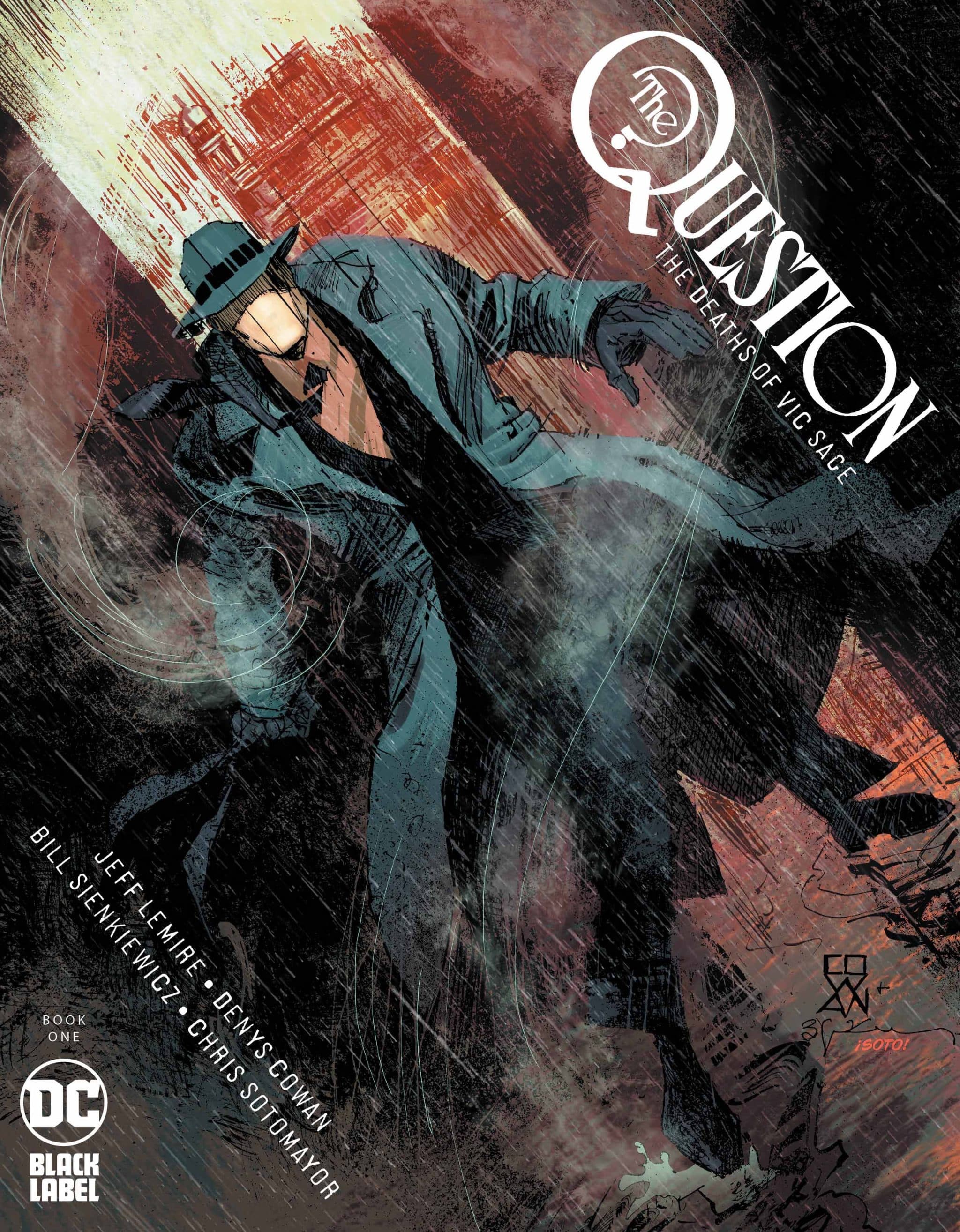 DC Black Label branches out from Batman, the Joker, and Harley Quinn in the gritty and trippy The Question: The Deaths of Vic Sage #1. With a dedication to both Question’s original creator Steve Ditko and his finest writer (Up to now) Dennis O’Neil, writer Jeff Lemire, artists Denys Cowan and Bill Sienkiewicz, and colorist Chris Sotomayor attempt to bridge the character’s portrayals as an Objectivist, who views the world in strict black and white terms and as an Eastern philosophy-influenced fighter of systemic evils, who donned the Question mask to right wrongs that newscaster Vic Sage couldn’t. They also craft the first chapter in one hell of a mystery. It features an art style that is far from the usual capes and tights.