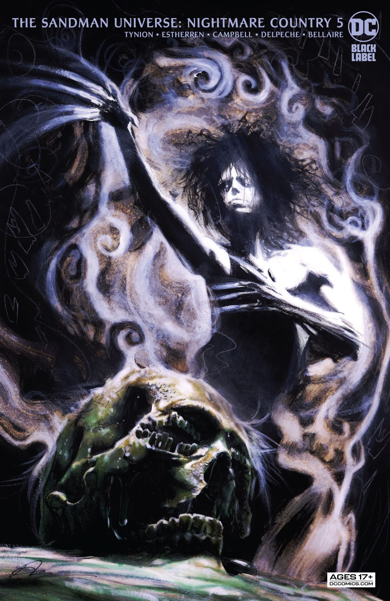James Tynion, Lisandro Estherren, and Patricio Delpeche dip their toes back into The Dreaming in The Sandman Universe: Nightmare Country #1. The story centers around the nightmare The Corinthian, whose teeth for eyes motif has been an inspiration for a Brooklyn college student named Flynn. (It’s less inspiring to the guy she brings back to her dorm room.) Estherren’s art style actually looks like dreams with a flowing, impressionistic line and a lo-fi palette from Delpeche. However, in the early going the visuals are unfortunately all Nightmare Country has going for it.