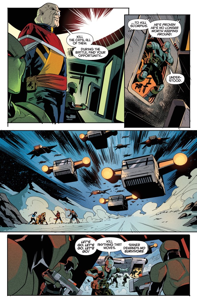The battle is joined by more ThunderCats, including several whose fearsome abilities threaten to overwhelm the isolated SilverHawks. But when a second vessel appears in orbit, it becomes clear to Panthro that reinforcements are on their way – and not even the Eye of Thundera will be able to stop them!