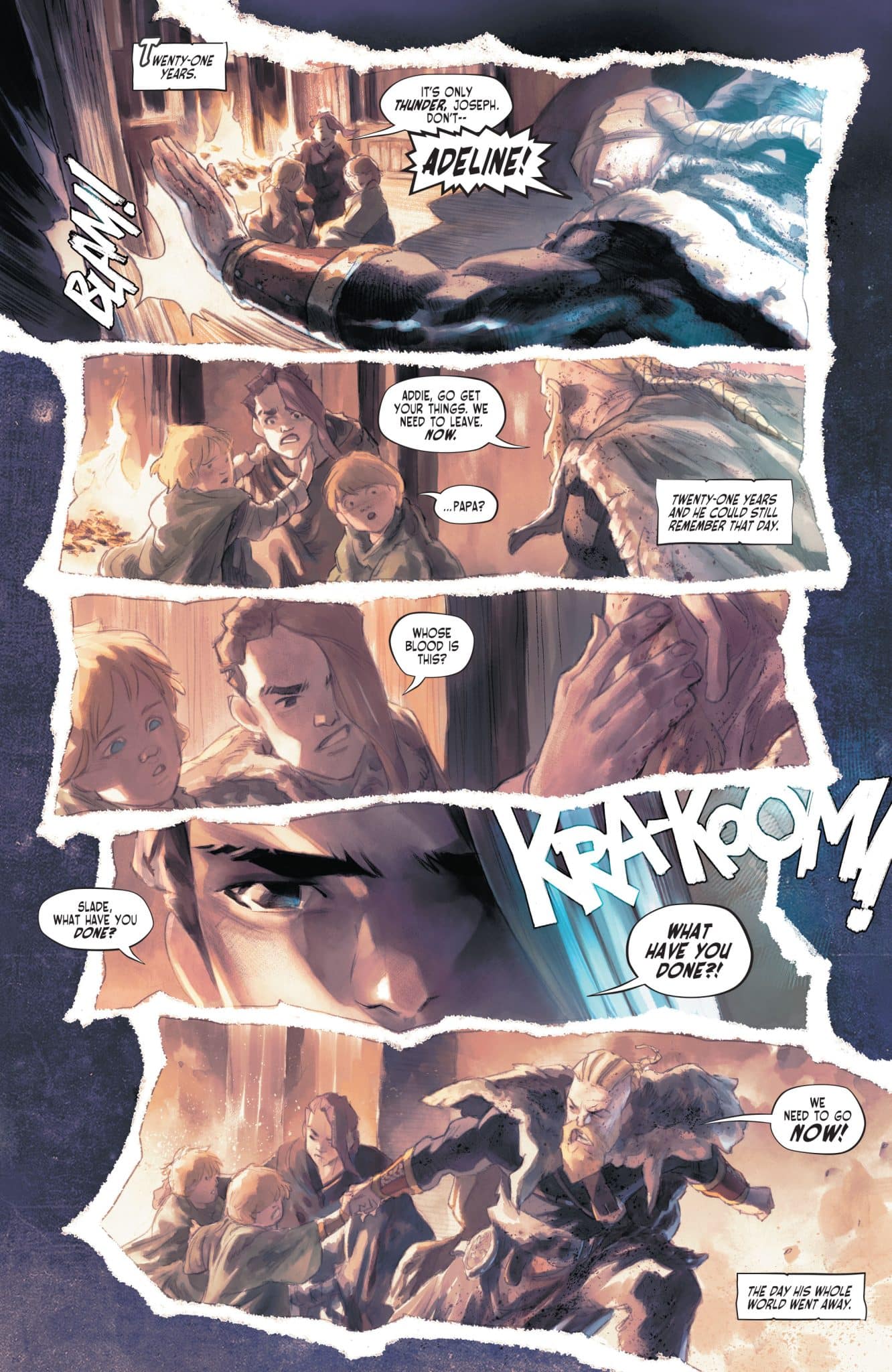 In this new series, the snows fall thick, blood runs black, and color itself is only a distant memory. The legendary assassin Deathstroke stalks a frozen wasteland, killing for coin among a nation of ever-warring jarls. But when our murderer for hire finds himself cast in the role of reluctant guardian, will he fight to end the icy curse destroying his land, or be consumed by the sins of his own dark past?