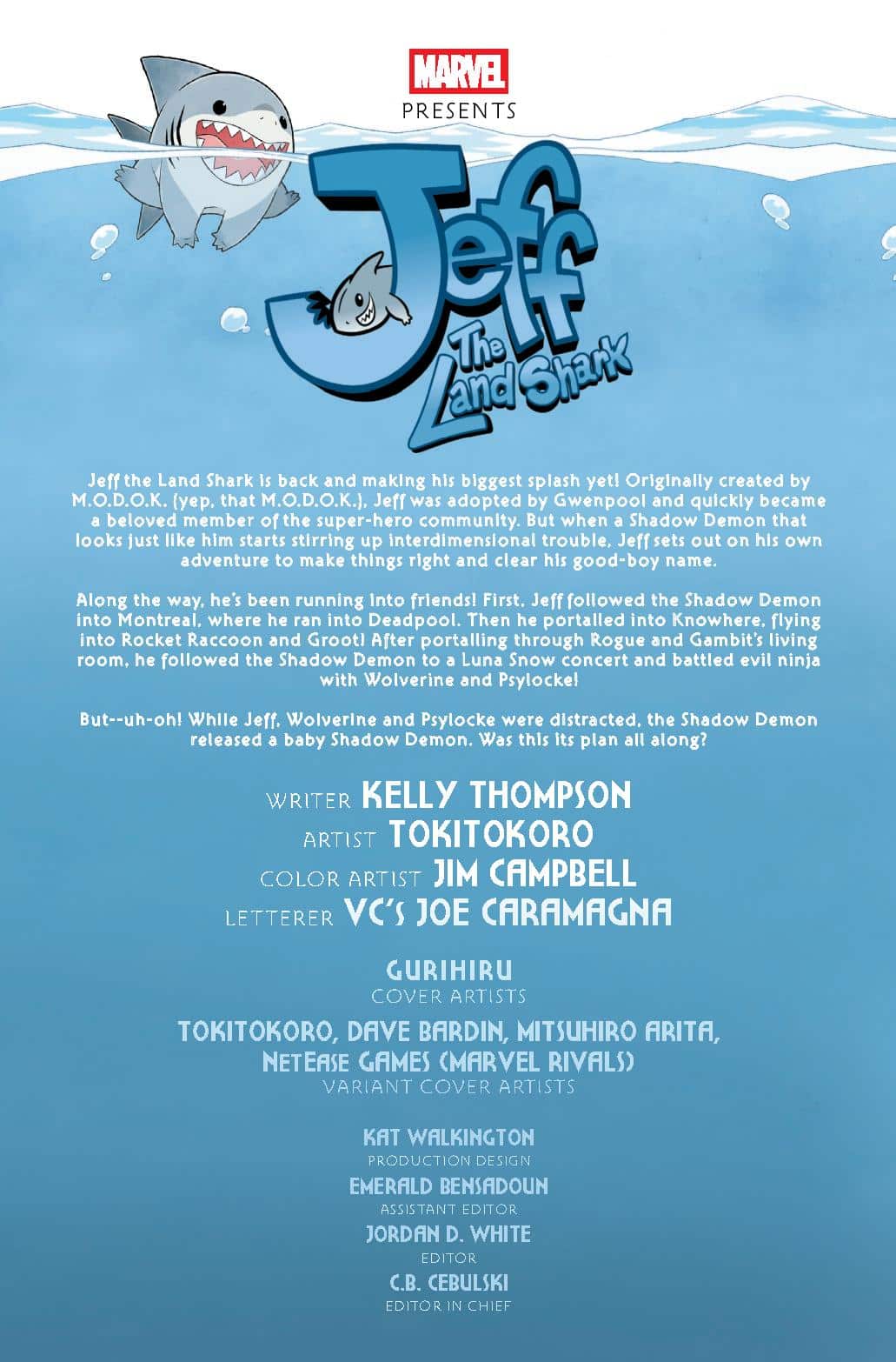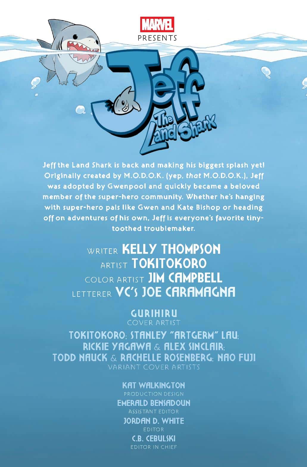 Hot off his star-making appearance in Marvel Rivals, Jeff the Land Shark makes a big splash this summer in his first-ever print comic series! Hitting stands on June 18, Jeff the Land Shark is a five-issue limited series written by Jeff’s co-creator Kelly Thompson, following her Eisner-nominated It’s Jeff Infinity Comic, and drawn by acclaimed artist Tokitokoro. Fans can check out all six covers for the debut issue, including a new piece by best-selling artist Stanley “Artgerm” Lau that spotlights Jeff’s Marvel Rivals design.
