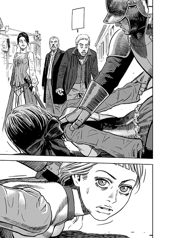 Oldman took Rebecca to an underground doctor who fitted her with mechanical arms and legs. Together they now vow to take revenge on the queen that wronged them.