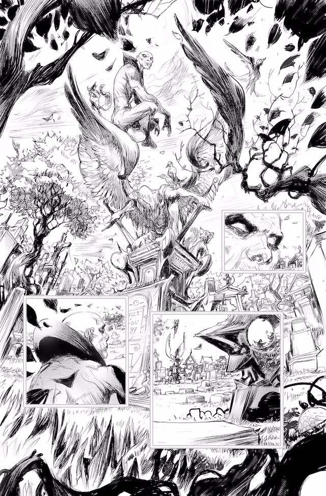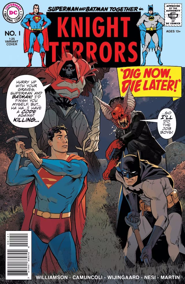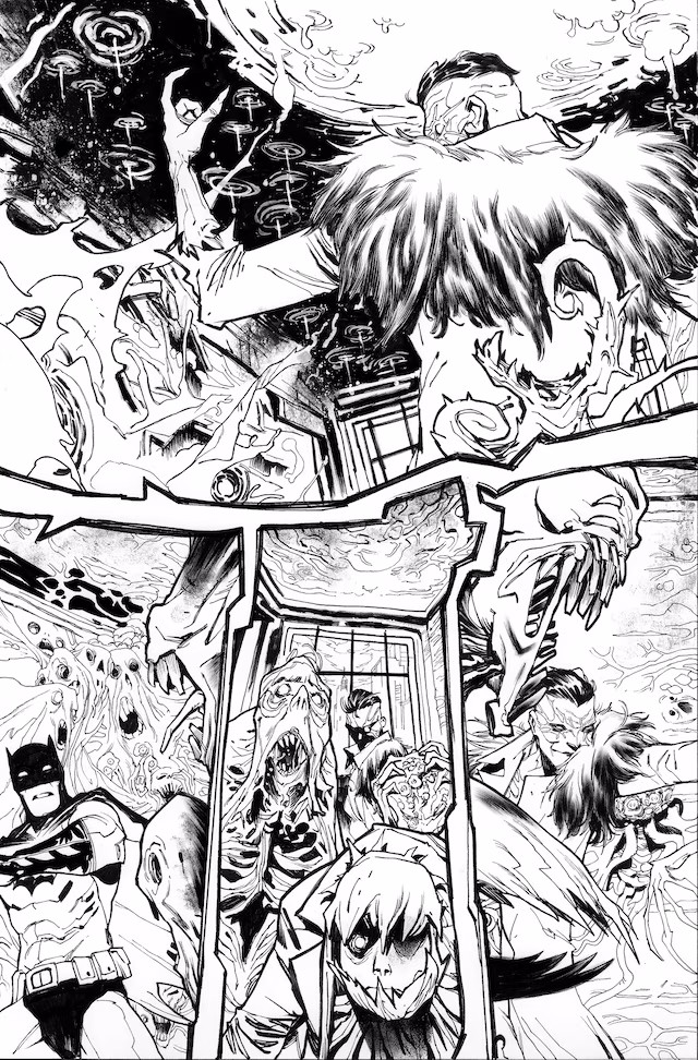 The main Knight Terrors story will take place over four issues written by Williamson with art by Giuseppe Camuncoli, Stefano Nesi, and Caspar Wijngaard, in which Boston Brand—a.k.a. Deadman—serves as the supernatural tour guide! Following the events of Knight Terrors: First Blood #1, everyone in the world is trapped inside their nightmares, and Batman and Deadman are trying to figure out who Insomnia really is…and why he wants revenge on the heroes of the DC Universe! Knight Terrors #1 is available at comics shops on July 11 with variant covers by Francesco Mattina and Alex Maleev, a 1:25 variant by Evan “Doc” Shaner, a 1:50 by Alex Maleev, a 1:100 by Ivan Reis, and a Darkest Hour cover by Reis.