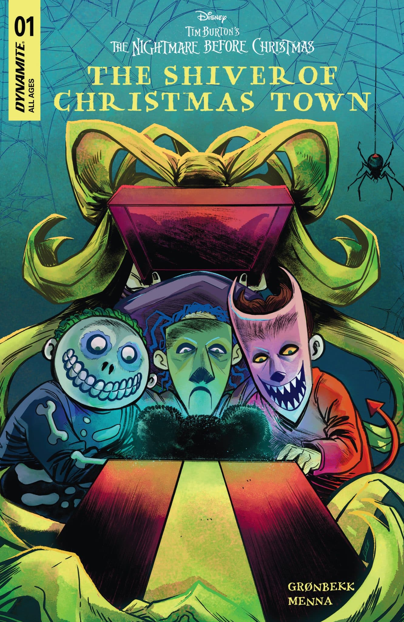 LIFE’S MORE FUN WITH SOME GOOD SCARES! Dynamite’s first-ever ongoing comic book series set in the world of the beloved film Tim Burton’s The Nightmare Before Christmas continues with its second seasonal issue this February! Dr. Finkelstein’s newest creation, the deceptively adorable Shiver, has been spirited away by Lock, Shock, and Barrel, much to Sally’s consternation. But things are about to go from bad to worse for this newest resident of Halloween Town when Shiver stumbles into Oogie Boogie’s lair — and unknowingly consumes a breakfast belonging to three of his hungry ghouls! Luckily for Shiver, Lock, Shock, and Barrel aren’t about to lose their new friend over such a trivial misunderstanding — not when they’re due at Christmas Town for the snowy realm’s first-ever Halloween. And it’s a good thing, too, because when the famed trio of tricksters confront the horrifying adorableness of Christmas Town’s take on their signature celebration, they’ll need all the help that they can get to set things right! Jolly old elves TORUNN GRØNBEKK and EDU MENNA summon the holiday spirits in Tim Burton’s The Nightmare Before Christmas: The Shiver of Christmas Town #2 — accompanied by costumed covers from JAE LEE & JUNE CHUNG, SOO LEE, and ALAN QUAH, as well as a special selection from the Disney Library!