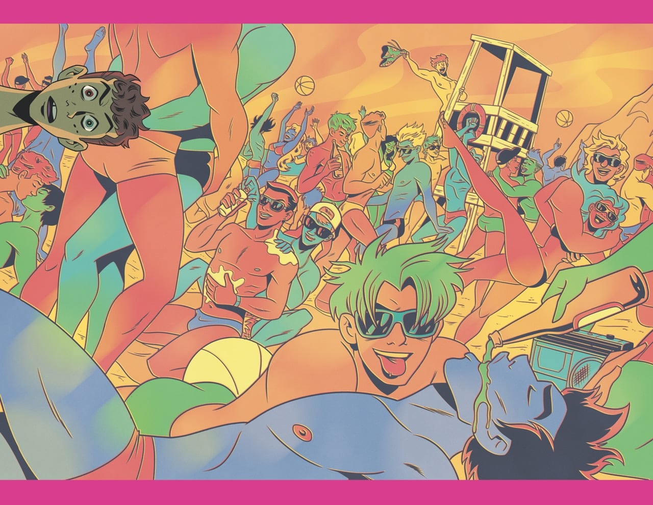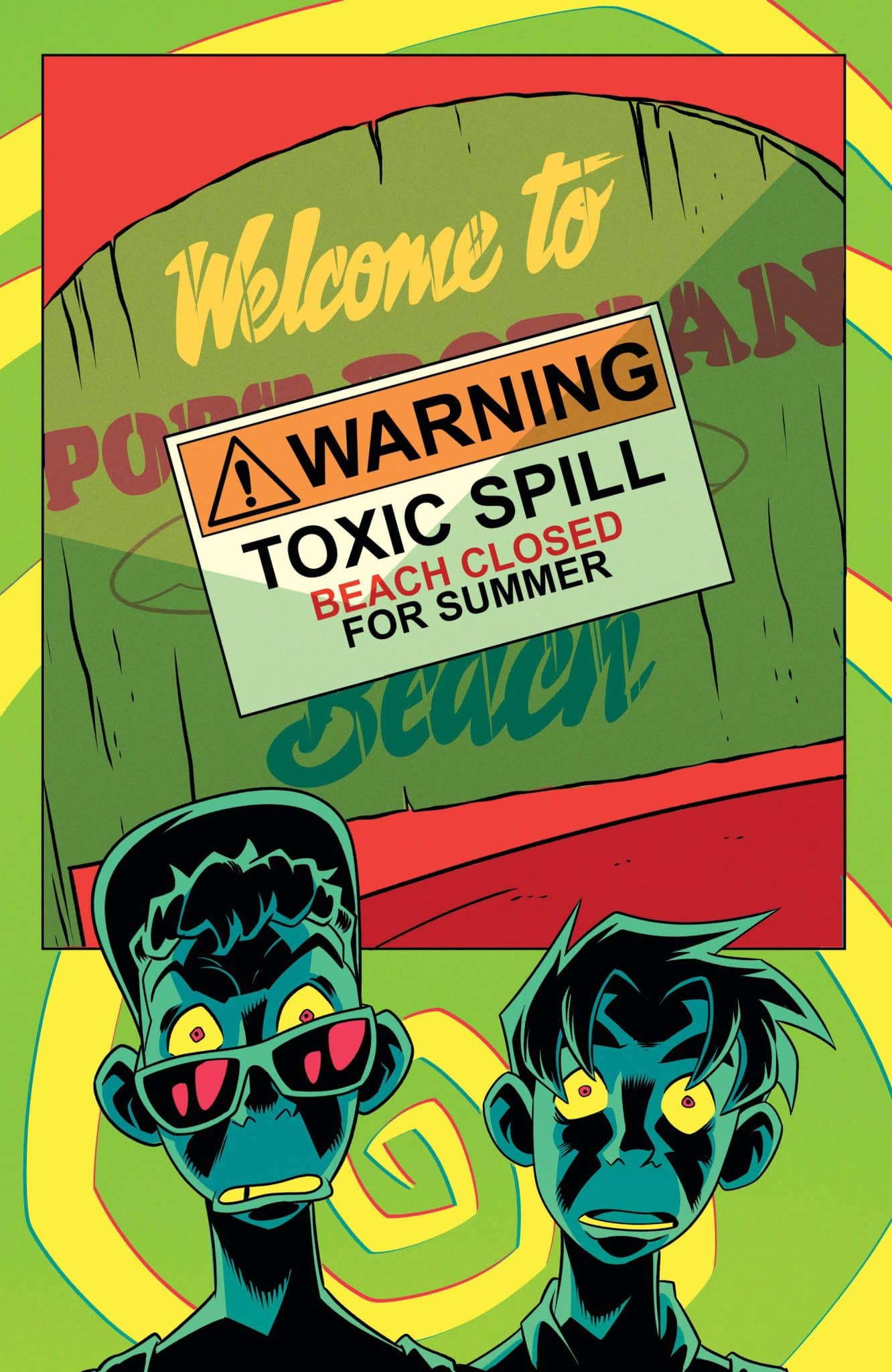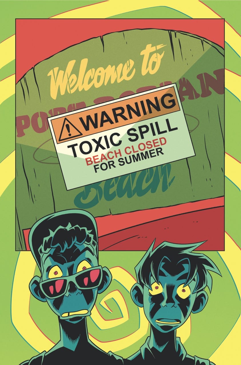 Oni Press has released a first look at the return of the sun-radiated smash-hit Toxic Summer #2! Eisner Award–winning cartoonist Derek Charm is headed back to the shore for the next suntan lotion-lathered chapter of the summer’s most tongue-in-cheek fright-fest! The critically acclaimed beach blanket bloodbath crests its second wave on July 3rd!