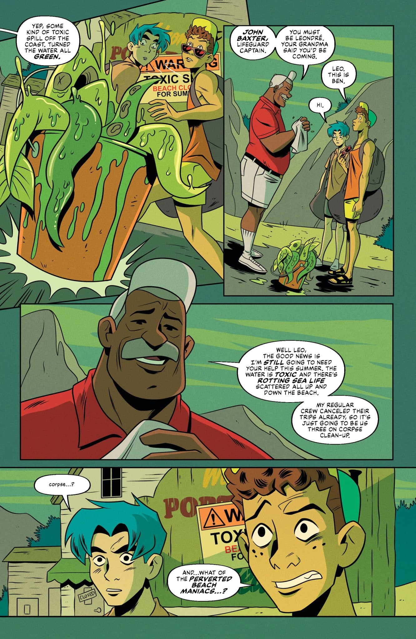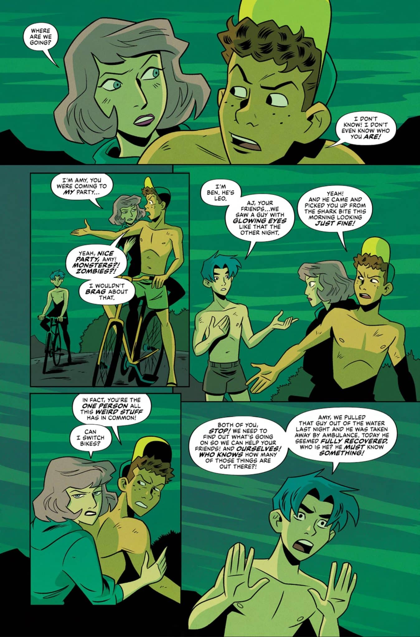 Ben and Leo arrive at the bonfire beach party ready to cut loose, only to find the site seemingly abandoned in the wake of the attack . . . until Amy nabs them from her hiding place! Together they learn from Roger—Amy’s dad and the same man they rescued in a catatonic state in the ocean with GLOWING EYES the night before—that this toxic spill and the emergence of tentacled monsters from the deep began right after he removed an ancient relic of a highly advanced civilization from the ocean floor. Is there still time to return it and get this sexy summer back on track?