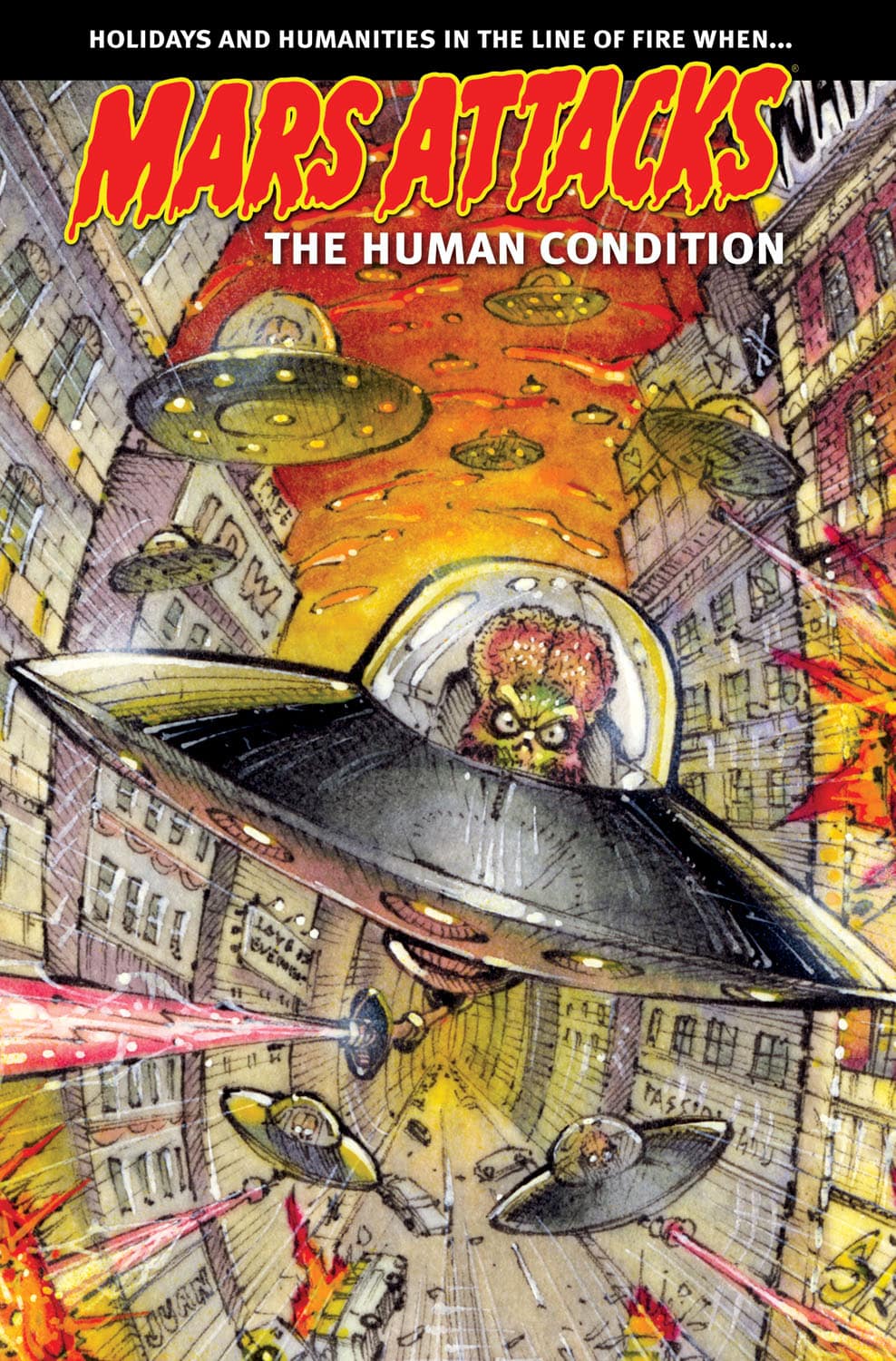 Mars Attacks The Holidays and Mars Attacks: Classics Obliterated are collected into one volume by some of comics’ most talented creators. Halloween, Veteran’s Day, Thanksgiving, and Christmas aren’t safe from these alien invaders and neither are such literary classics as Moby Dick, Jekyll & Hyde, and Robinson Crusoe.