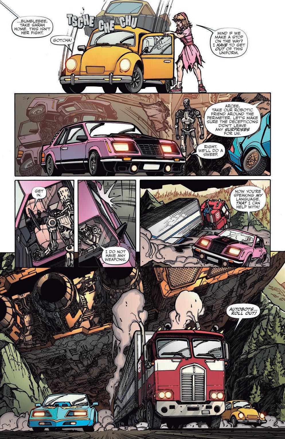 We’re taken to Los Angeles in 2029, where the war between humans and Skynet has taken a cease-fire, as the Decepticons are waging a war on Planet Earth, looking to conquer by any means necessary. Skynet sends a Terminator back to 1984, a T-800, where he meets a young Sarah Connor, and who in this timeline, still is the key to defeating the enemy, the Decepticons. As he searches for the Autobot Base, it seems like he may be too late, as Megatron stands over his lifeless body, which is when the T-800 surprises them with suppression fire. This gives Bumblebee a chance to rescue Optimus, and give the Autobots an upper hand. Meanwhile, we find out Megatron is in search of Energon on earth, something he finds in multitudes at the Cyberdyne Systems plant, which leads to a standoff between the T-800 and the Autobots against the Decepticons. By the book’s end, one villain falls while one hero looks for all Transformers to live peacefully, while T-800 accomplishes its mission.