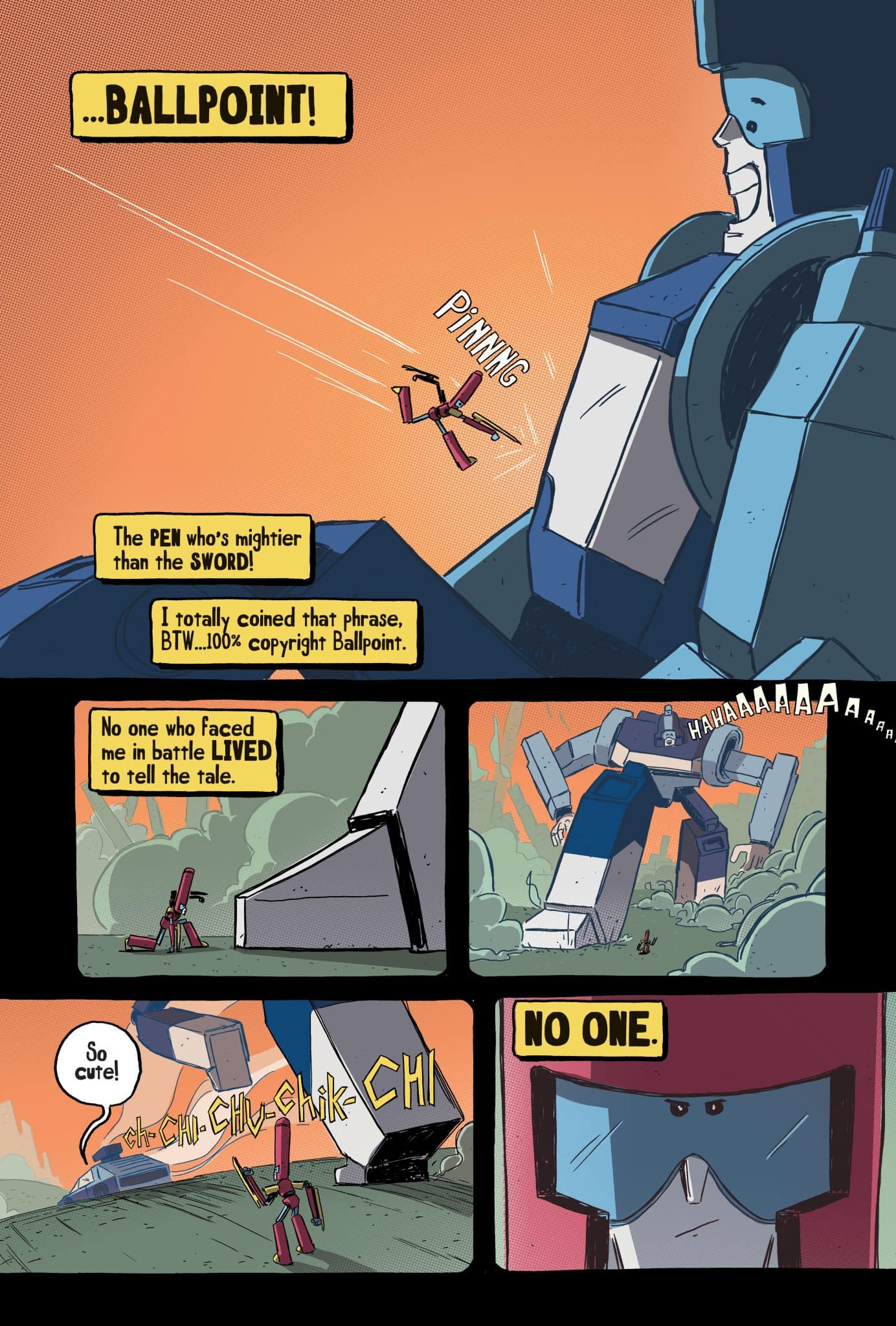 Middle grade readers will be introduced to the misadventures of the bot who is mightier than the sword when Transformers: Worst Bot Ever: Meet Ballpoint hits stores next July.