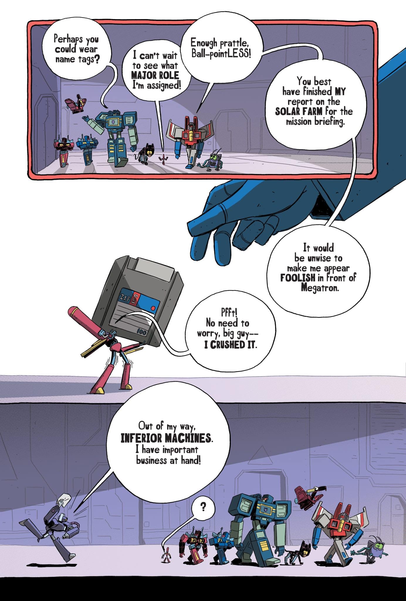 The Decepticons are known for being bad…but Ballpoint is truly the worst –the biggest failure of them all. After the latest attempt to take down the Autobots goes horribly wrong, he’s kicked out of the Decepticons, for good! Will Ballpoint be able to prove his worth by defeating the Autobots all by himself? Or will he keep failing and find that being the “best” is…More than Meets the Eye?