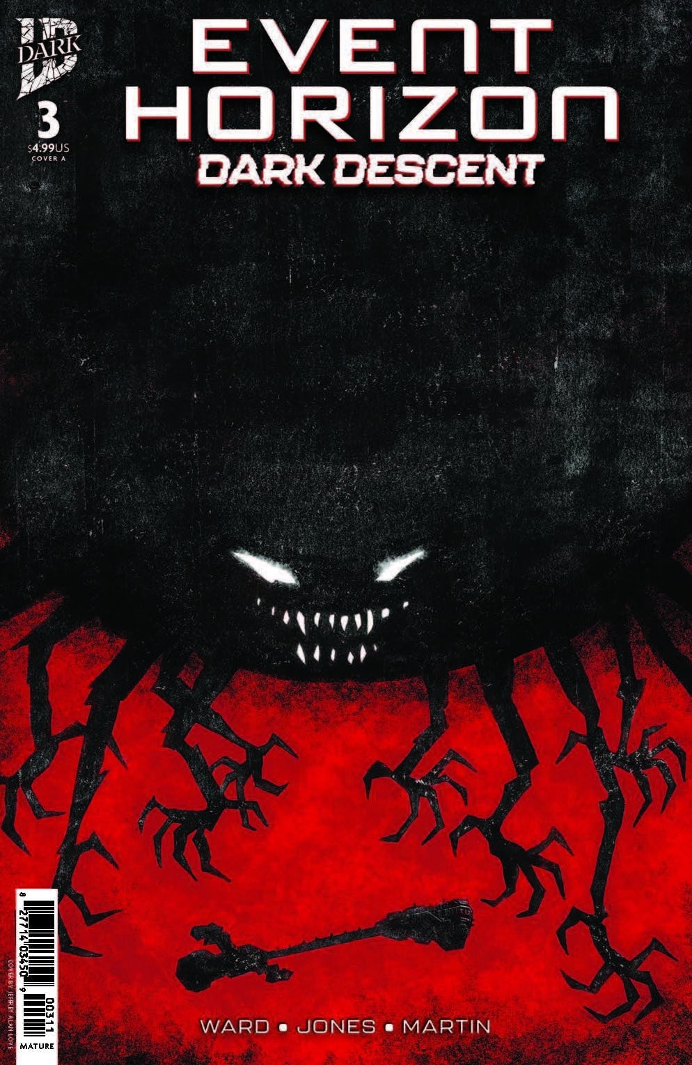 After activating the experimental gravity drive aboard the ship, the crew of the Event Horizon are transported to an outer-space hellscape that defies comprehension. Already, this new realm is making some of the crew behave…strangely. And still, the worst is yet to come, as the king of this hell is about to make his entrance! Event Horizon: Dark Descent #2 continues to build off the visual horrors of the original film.