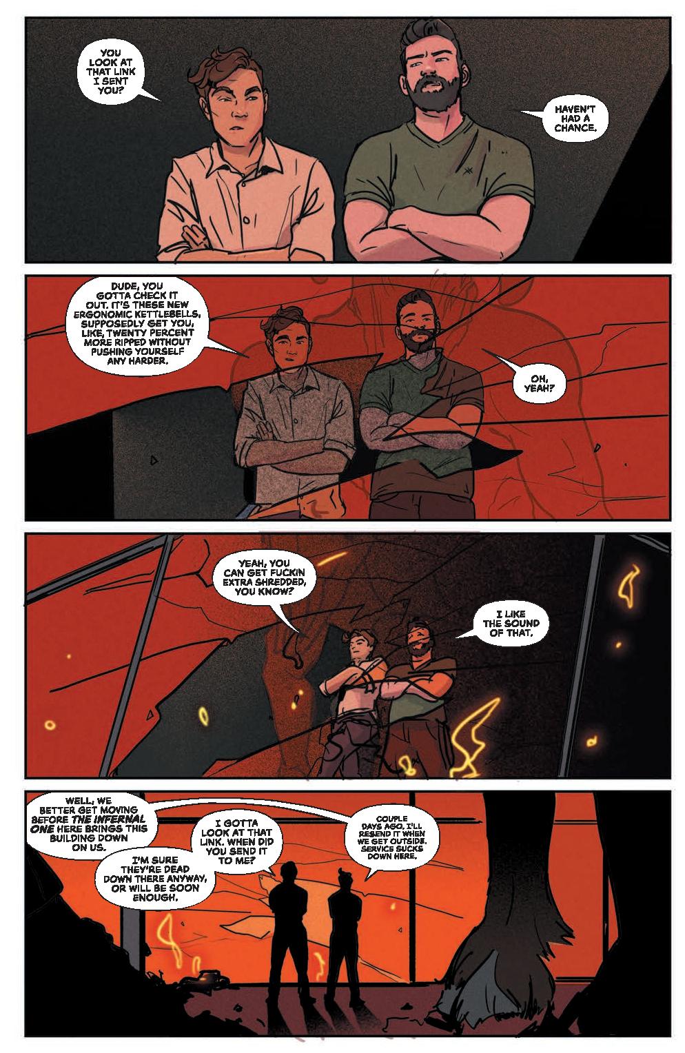 Marty and Alison face the supremely creepy Doctor Shiver! Escape from the subterranean skyscraper! Veronika brags about her allegiance to Satan! Bernice listens to her! Stunning Penultimate Episode! Are you with us?! You better be because “There’s No One Else I’d Rather Be Incinerated and Sent to Hell with Than You”-that’s the title of the issue, BTW- is how we feel about you.