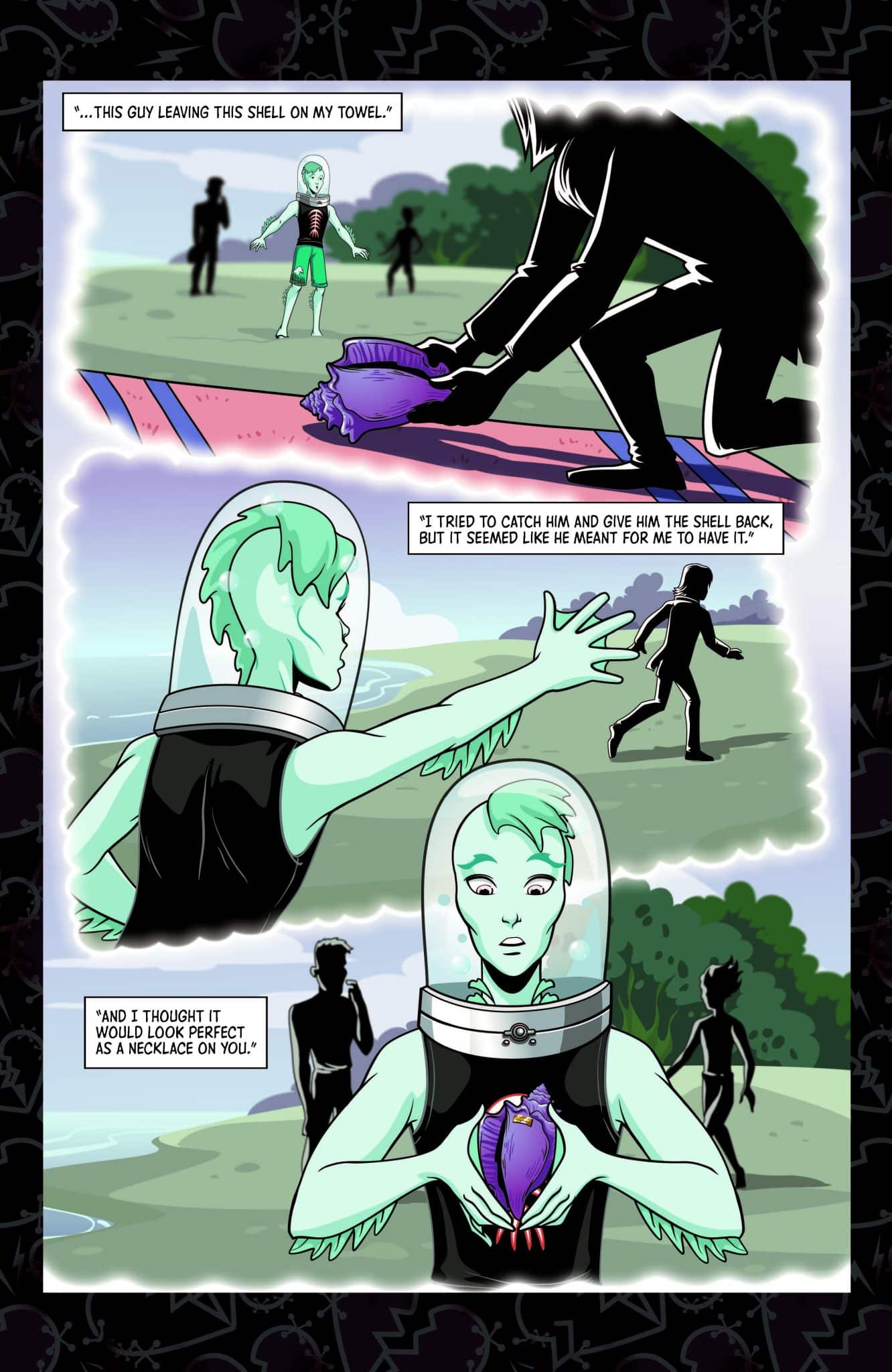 A fang-favorite returns! For the first time in over a decade, IDW is bringing out-of-print Monster High comics back to unlife. Each short story from I Only Have Eye for You by Heather Nuhfer and Kellee Riley is back in a new format for fans to enjoy. This month, Gil swims upon a fintastic shell. He fashions a faboolous necklace for Lagoona, and all is well. But when the ghoul dons the shell, she is not herself. If only Gil had left it on the ocean shelf!