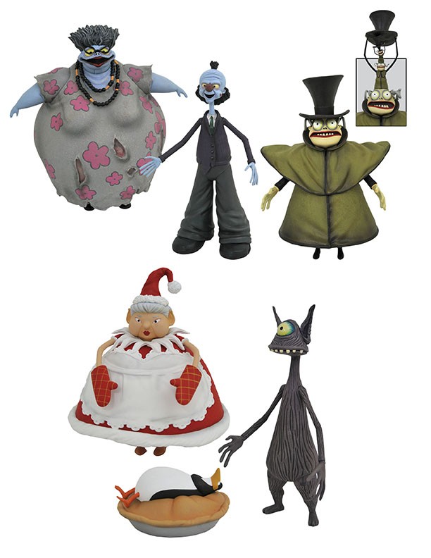 A Diamond Select Toys Release! This is Halloween! Some of Halloween Town’s creepiest citizens come out of the woodwork for this series of Nightmare Before Christmas Select action figures! Mr. Hyde with Corpse Dad, Corpse Mom with Cyclops, and Mrs. Claus each feature multiple points of articulation, and include various scary and/or festive accessories. They each come packaged in Select action figure packaging, with side panel artwork for shelf reference. Designed by Eamon O’Donoghue, sculpted by Cortes Studios. (ITEM #APR202644, SRP: $29.99/ea.)