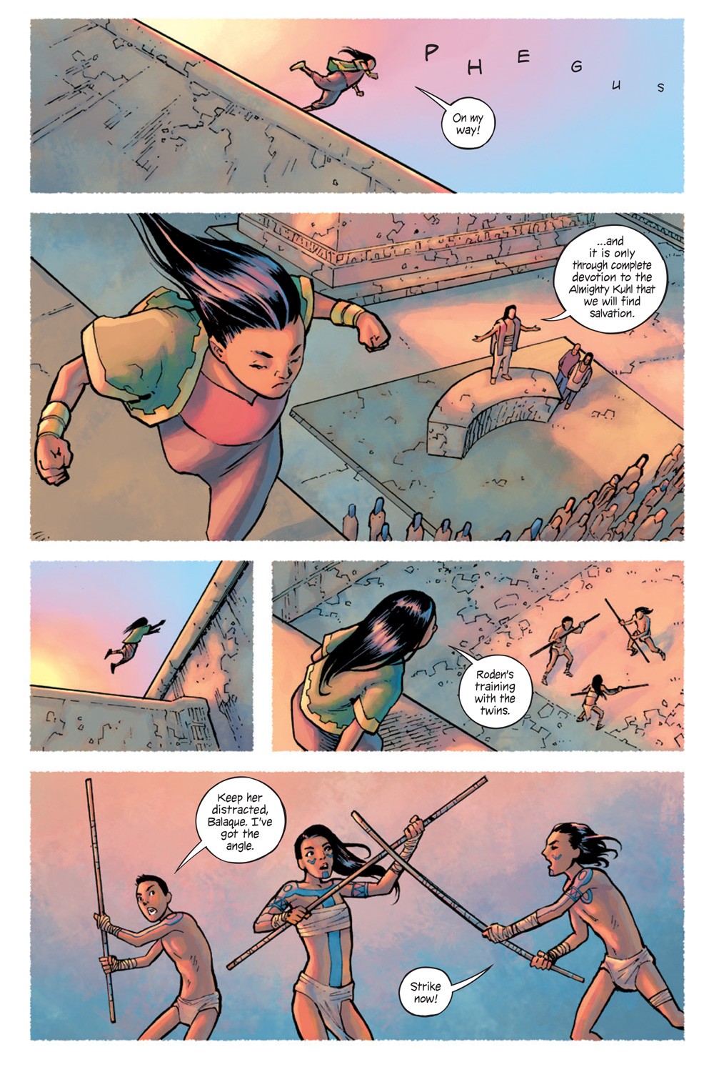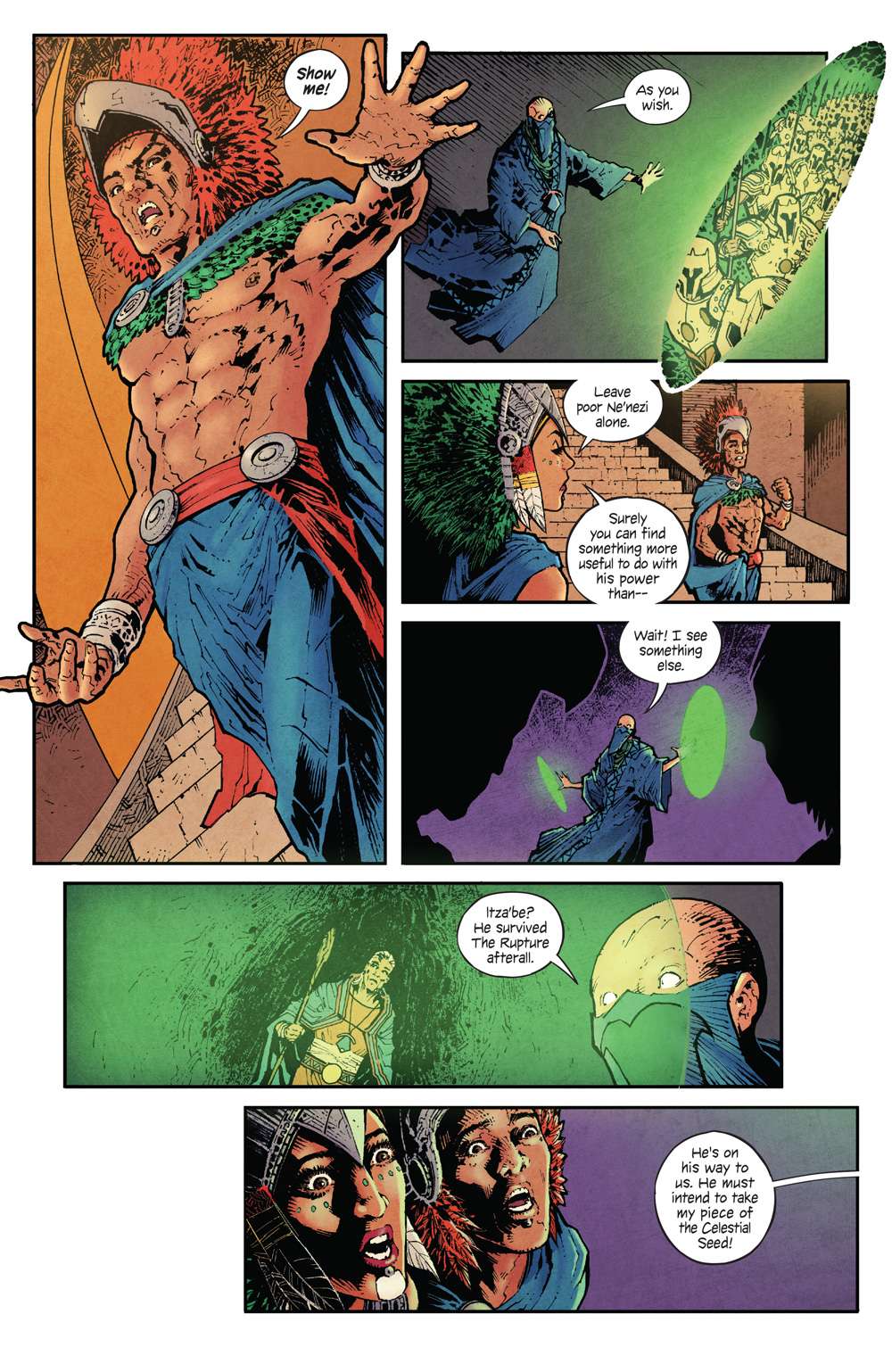Using the battle as a distraction, Itza’be and Zea set out toward the now unguarded Tzalekuhl Palace. They seek the remaining pieces of the Celestial Seed, knowing they must reunite them all before the solar eclipse. Meanwhile, Uhna and Balaque head to Cobán Rock hoping they’re not too late to prevent a massacre.