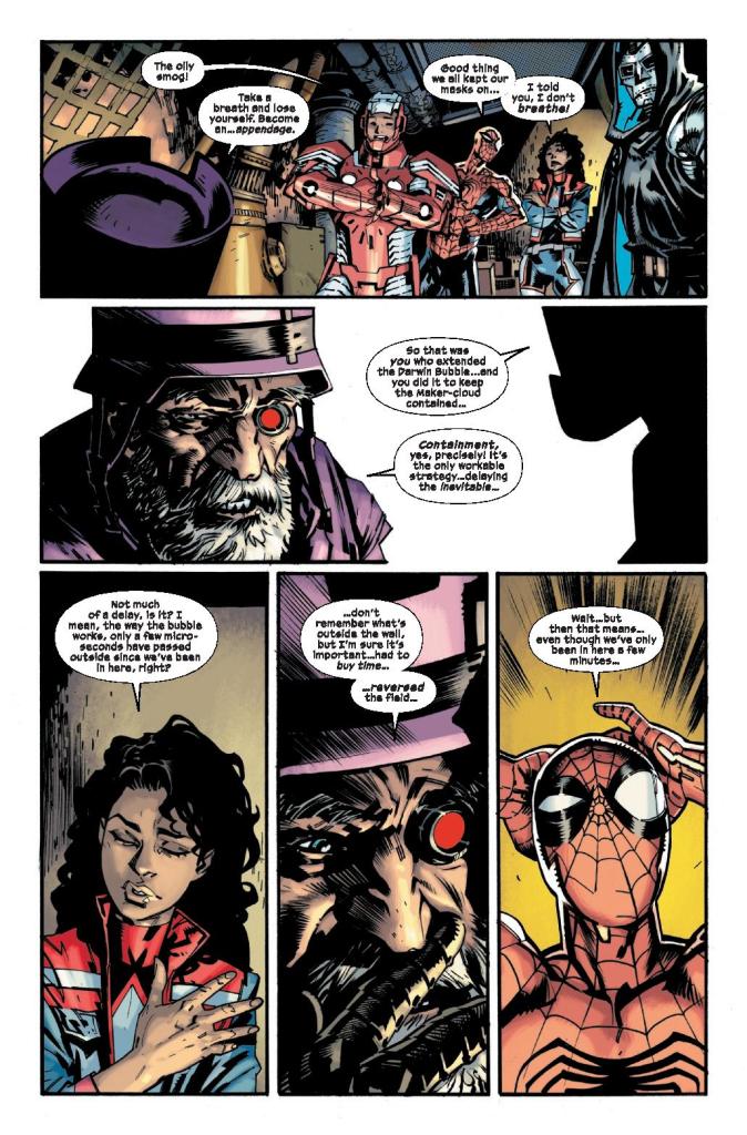 Still, we’ve had the countdown to the Maker’s return playing out for some time and it’s here at last and what is revealed is… intriguing. While not the jaw dropping surprise one might expect, the reveal is more mystery and odd sci-fi than superhero battle. Within lies some Ultimate debuts including one obscure character who is sure to cause some web searches and for those that know, and fun addition to a world that’s part of the multiverse.