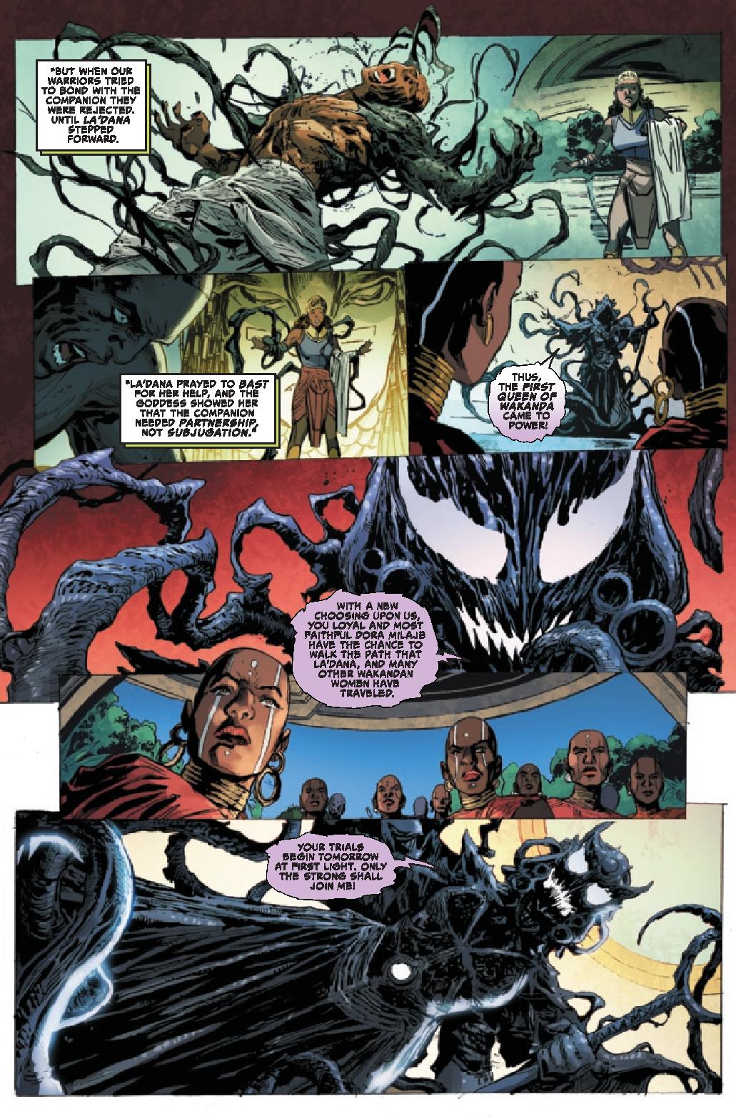 The journey across the VENOMVERSE reaches uncharted territory in the wide, weird and uncanny Marvel Universe(s)! Spider-scribe DAN SLOTT teams up with STEPHEN BYRNE to team NIGHTHAWK up with Venom! JUSTINA IRELAND and KEN LASHLEY travel to the ancient past and never-before-seen present of a Wakanda forged not of vibranium – but of symbiote! And AL EWING and DANILO S. BEYRUTH set the stage for what’s to come for the future of the VENOMVERSE!