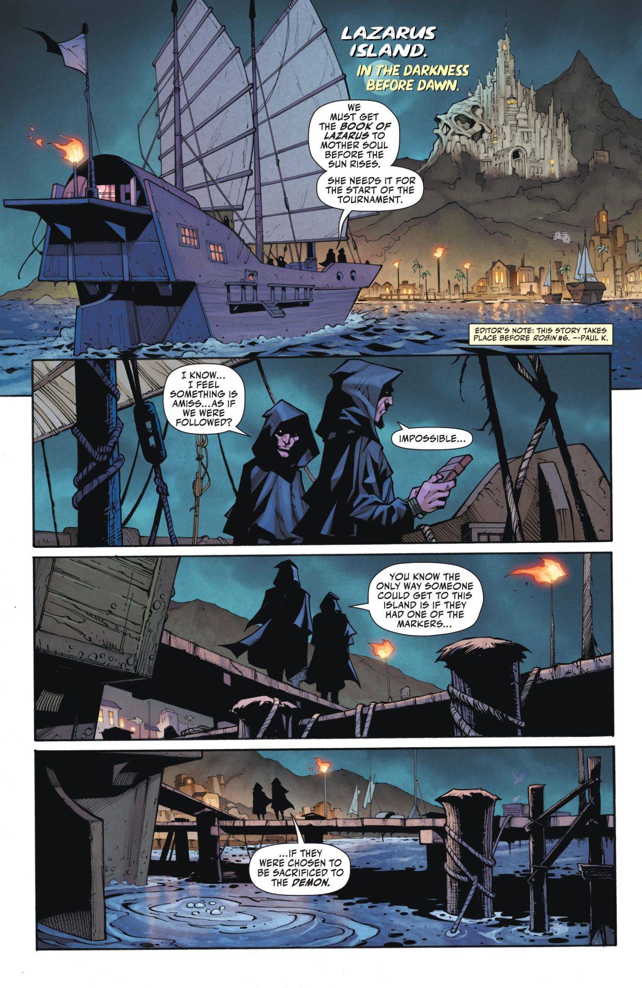 Ra’s al Ghul is dead, and Talia is out for revenge! Batman is on the case, in a race against time to find Deathstroke before Talia’s elite assassins do! But as the World’s Greatest Detective starts piecing together clues, he realizes that not all is what it seems when it comes to the death of “The Demon’s Head,” and the questions lead back to Talia herself! What added strain will this place on the relationship of these two former lovers? In the backup story, artist Trevor Hairsine joins Williamson revealing for the first time the secret first fight between Batman and Deathstroke!