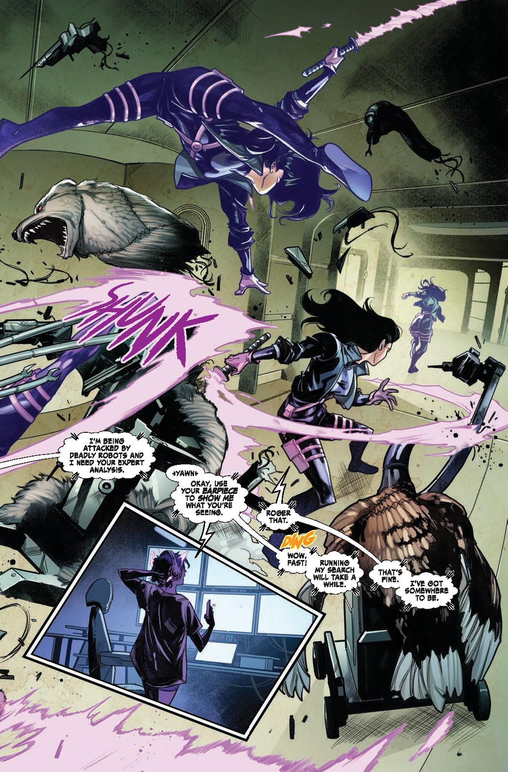The art by Vincenzo Carratù is pretty solid. With color by Fer Sifuentes-Sujo and lettering by Ariana Maher, the comic is of course drenched in purple while depicting the assassin looking sexy, but not objectified, and bouncing around to kick some ass. She’s shown as strong and vulnerable in the visuals and you get a solid sense of the emotional rollercoaster she’s going through with her facial expressions and body language. The tragedy is all there visually.