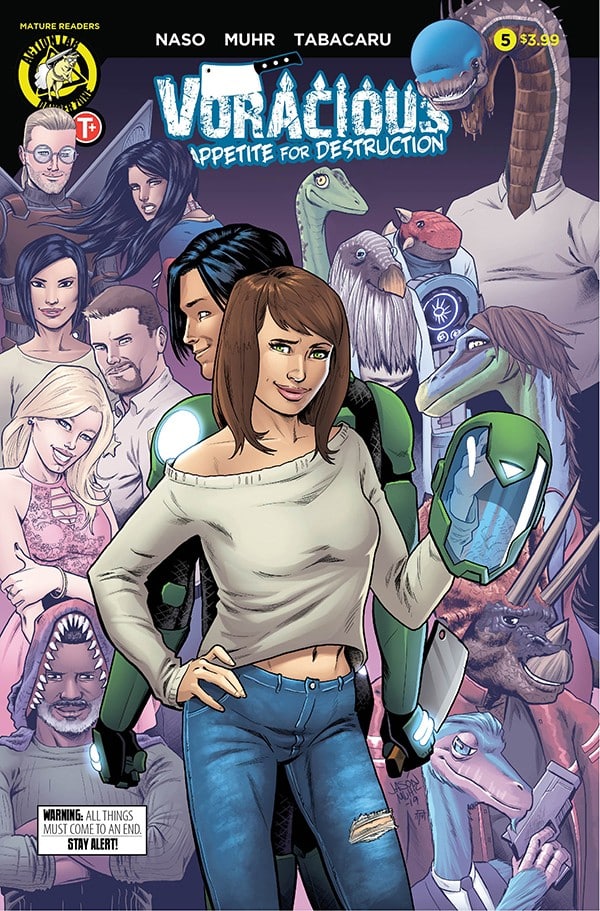 Voracious: Appetite For Destruction #5 surpasses any expectation I had for the series finale. This is a comic that takes everything from the previous fourteen issues (thirteen if you count the over-sized first issue as one) and pulls it together. It’s an end that rewards readers who have obsessed over every detail in each issue.