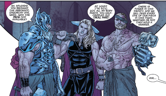 adventure of the three Thors in Aaron’s Thor,God of Thunder series and a similar