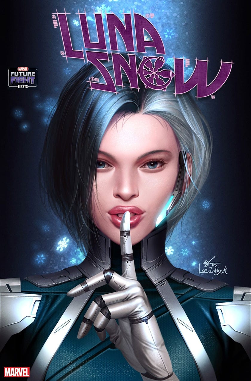 Introduced in the Marvel Future Fight mobile game, White Fox, Luna Snow, and Crescent & Io recently made their Marvel comic book debut in War of the Realms: New Agents of Atlas and now, because you demanded it, all three will have their origin stories revealed in Marvel Future Fight Firsts! Check out these gorgeous covers by In-Hyuck Lee and prepare yourselves for an up close look at these new fan-favorite characters!
