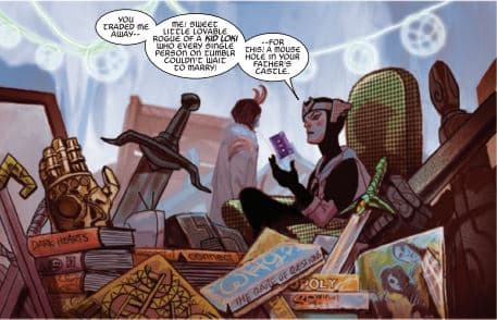 The “War of the Realms” tie-ins aren’t at their best when they’re trying to make serious points about the effects of war, like Dennis Hallum and Kim Jacinto did in War of the Realms Strikeforce: The War Avengers. They do work when they lean into the fun and lore of superhero comics and events. For example, in Superior Spider-Man, Gwenpool comments on the well-worn structure of event comics and how a B-Lister like Doc Ock doesn’t get to strike the final blow against Malekith, and in Skottie Young and Nic Klein’s Deadpool, the titular character fights trolls with the help of Australian stereotypes and the event’s single funny Lord of the Rings joke. There is also a great short story in War Scrolls #2 by Anthony Oliveira and Nick Robles where Loki (in disguise as Kate Bishop) and Wiccan go to drag brunch.