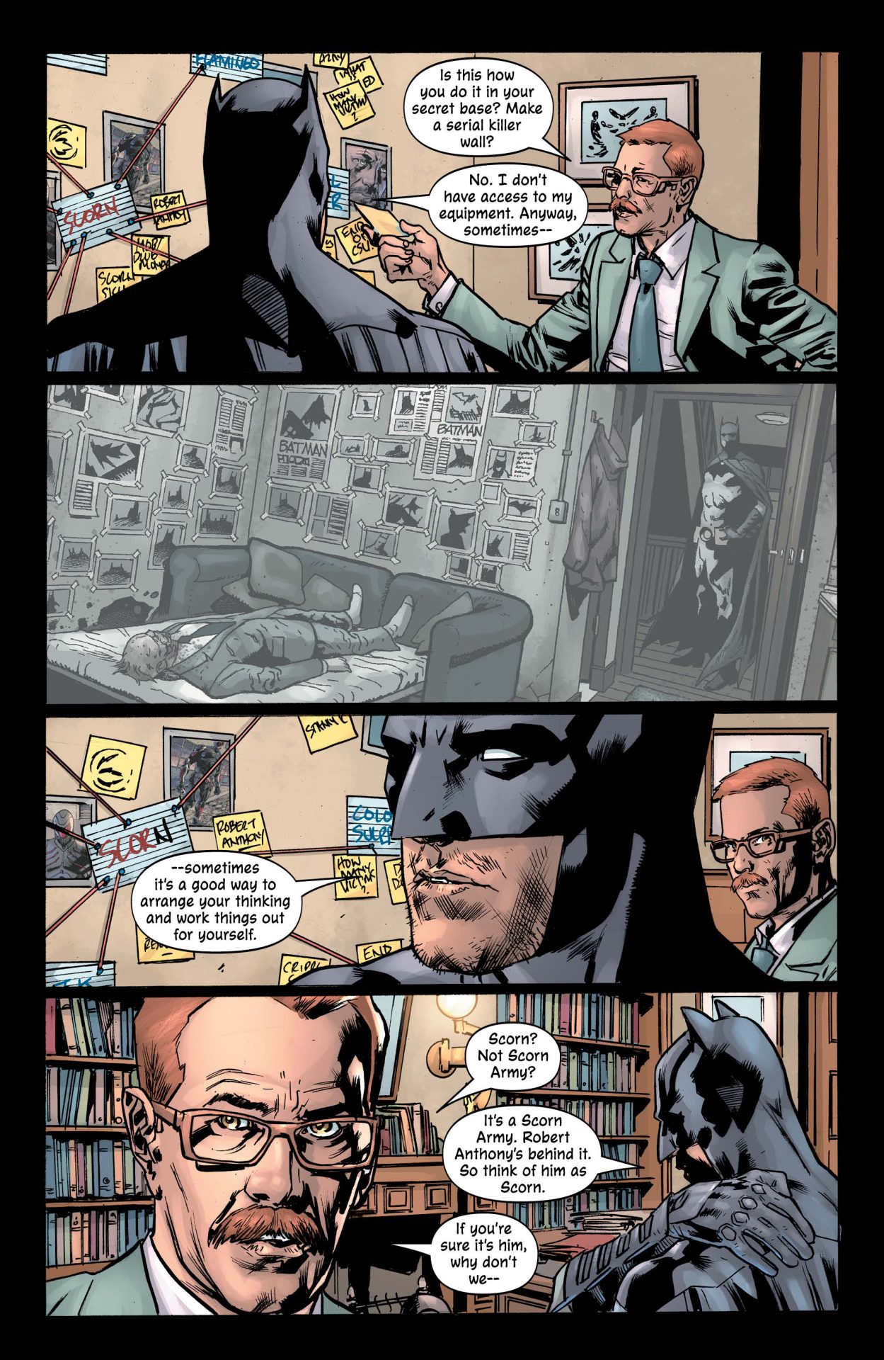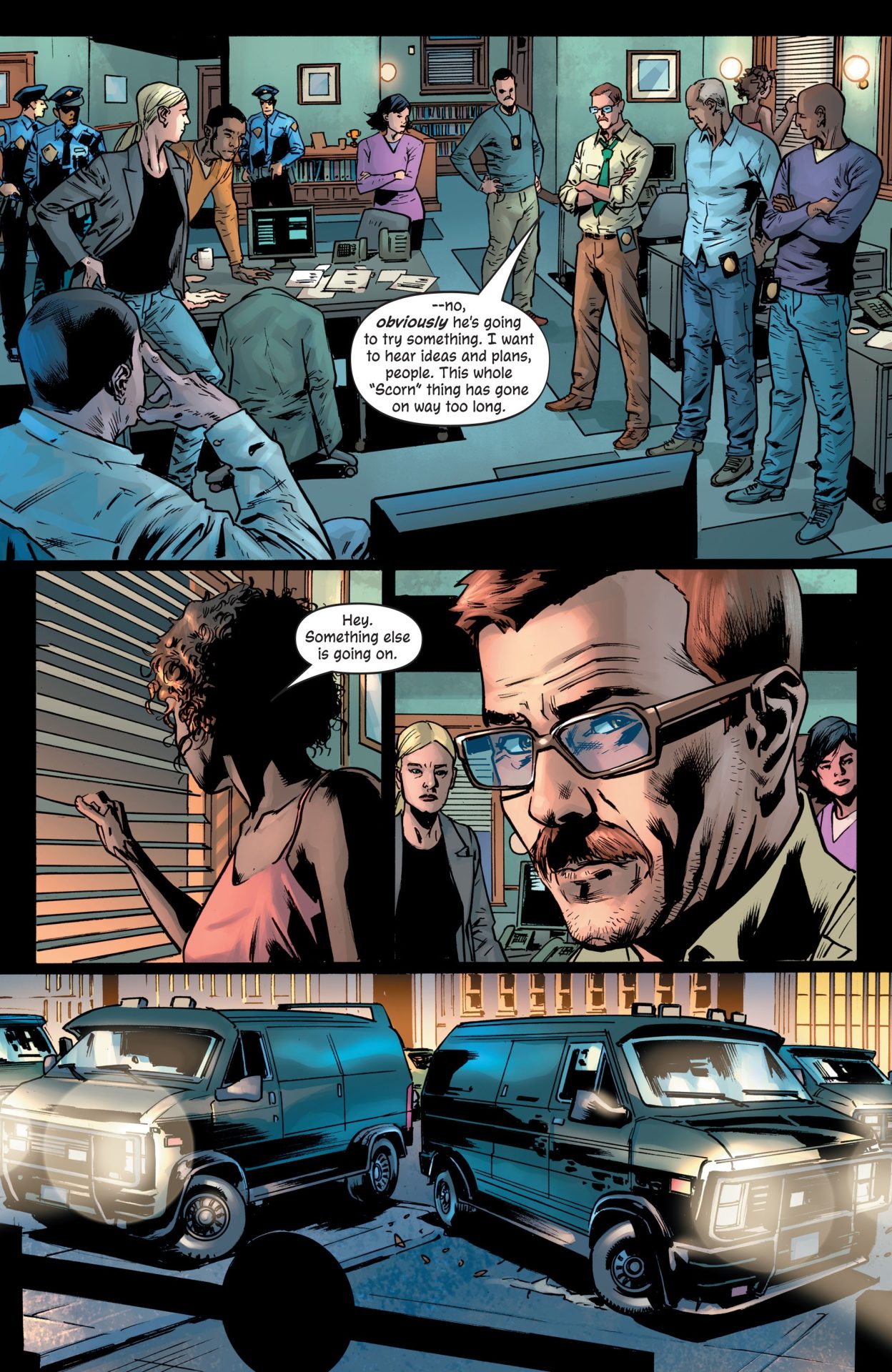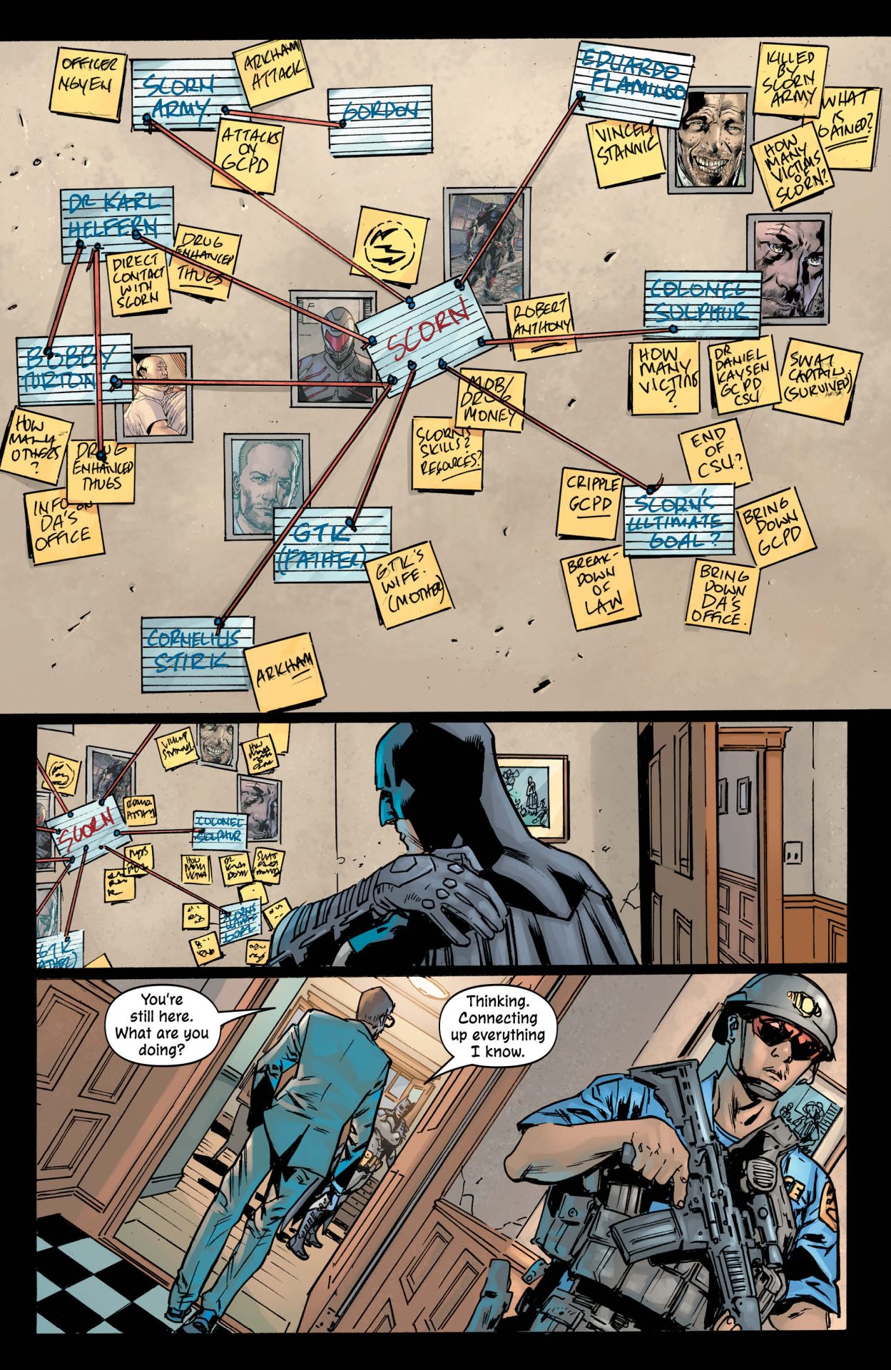 In this final issue, Scorn makes his final move to destroy justice in Gotham City! Injured and alone against an army of chaos, Batman has one chance to save the city: his ability to think like the victim. But the victim is always dead. The Batman can only win by using the approach of his own death.