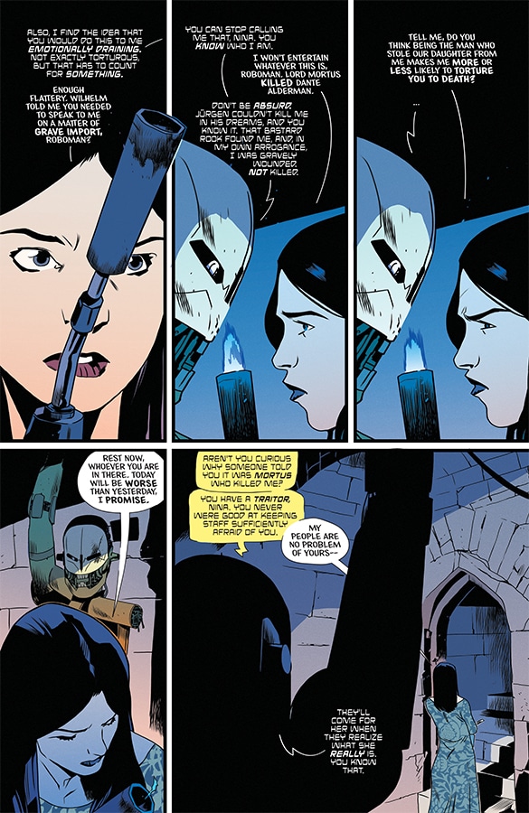 Betrayal! Despite a heroic sacrifice intended to buy her freedom from V.E.I.L., Annalise has become a prisoner in Chuma Castle. Now she must face her greatest challenge yet—Etiquette Classes! We’re Taking Everyone Down With Us #5 gives us a better idea of the secret about Annalise that’s been teased as she gets to know her mother.