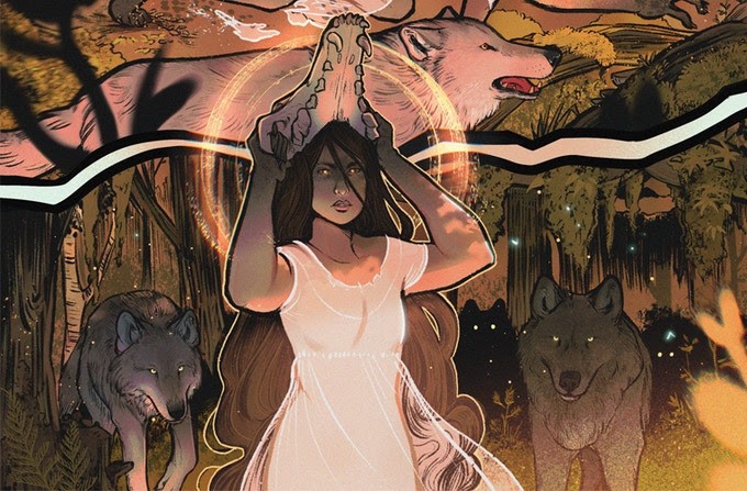 WIFWULF (stylized as WIFWVLF) is an original folklore myth telling the story of Charity Bjornsdotter, a young woman in 1860’s Montana who spends her days in the woods with her closest friend, a local wolf she calls Silver Slash. Charity is on the precipice of marriage to the handsomest man in her small village, the mercurial-yet-beloved Paul Skeld. But as her husband isolates her from Silver Slash, she begins to feel a call to the wilds…for it is there that her true destiny awaits. WIFWULF is the harrowing tale of a woman forcibly separated from that which makes her feel alive, a reinterpretation of the classic werewolf myth… and the origin story of a new goddess.