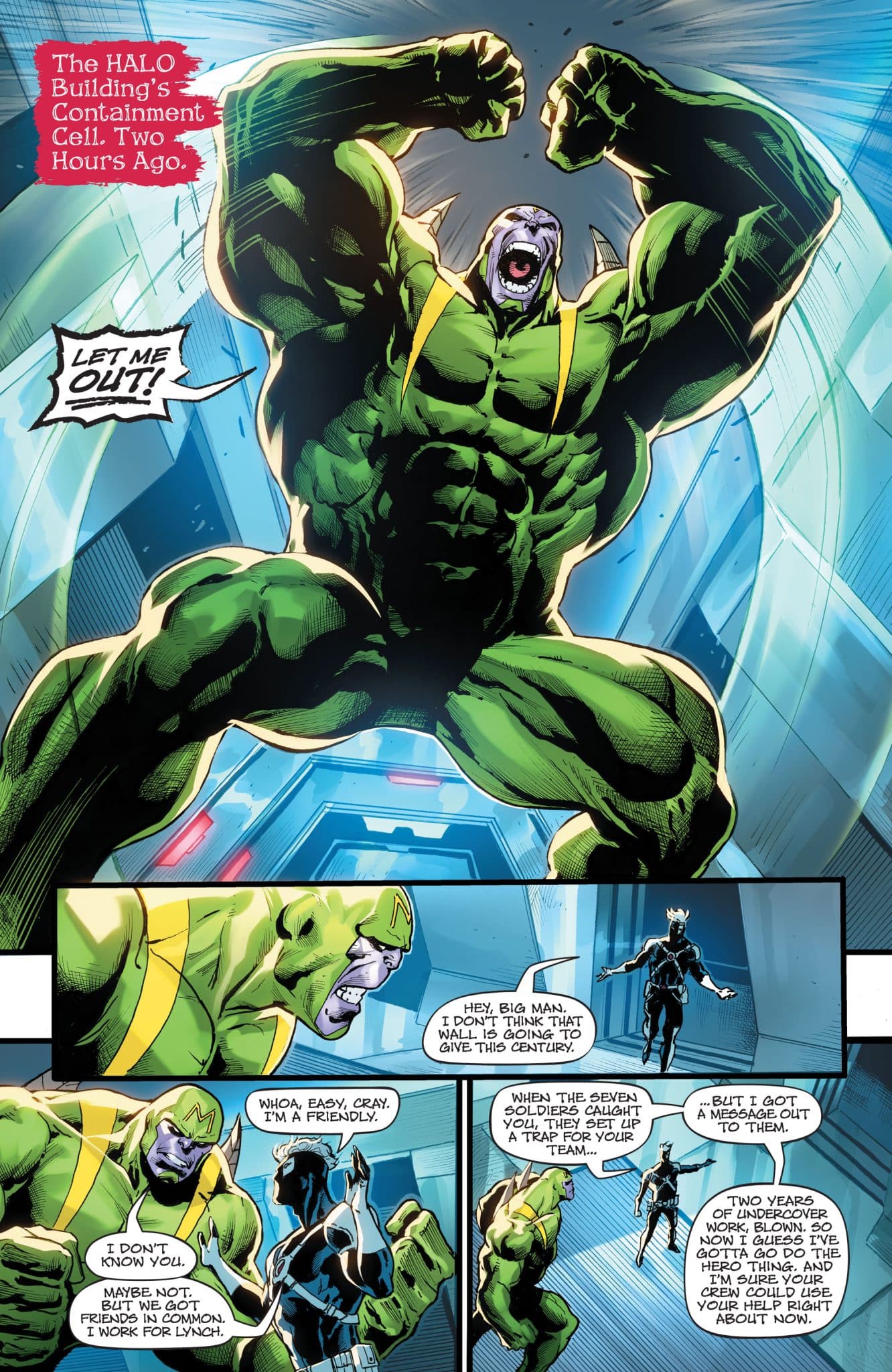 In a final, climactic battle for control of HALO and all its secrets, it’s the WildC.A.T.s versus the Seven Soldiers versus the Court of Owls! Winner take all! WildC.A.T.S. #12 wraps up a wild run that finally brought the Wildstorm characters into the DC Universe in a way that makes sense and works.