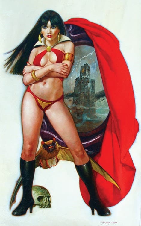The history-making series will feature cover after cover from the greatest artists today. For the first issue, fans can choose a wraparound cover featuring Vampi in a way only Frank Cho could render her, incorporating his recent acclaimed ballpoint pen techniques. Or pick up a cover from the peerless Alex Ross. While Joe Jusko steps up to bat as another classic painter in the industry known for his work on Vampi and so many other titles. Guillem March marks his first work at Dynamite with a jaw dropping cover. A blockbuster Women of Dynamite title is not complete without a talented cosplayer, with Erica Fett kicking things off for #1. A real treat for longtime Vampi fans is Adam Hughes recreating his own cover in an homage to 1992’s Vampirella #1 for an incentive variant. Going back even more old school, fans of the beautiful Warren era and the Spanish masters will be overjoyed to learn of a limited edition Sanjulian variant!