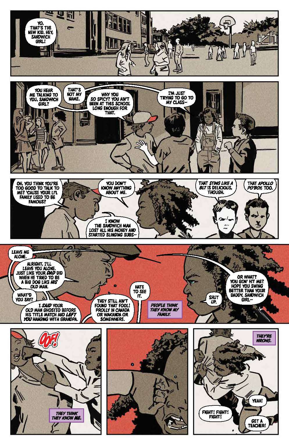 In Creed: The Next Round #4 not only do we need to deal with Adonis’ sibling issues but Amara’s big fight. It all is wrapped up well enough but everything deserved more. More interesting imagery, more emotion, more drama, and more boxing. The issue hits the beats you’d expect but doesn’t deliver the “f-yeah” feeling you’d expect. There’s something missing that both Creed and Rocky films nailed consistently. A montage is cut short. The fights never quite delivering the dance you want or the brutality you expect. A graphic novel for each act would have allowed for exactly that as well as build more into the family drama of Adonis, his wife, and daughter as well as Adonis and his siblings. Everything feels rather… rushed, as if it’s up against a bell.