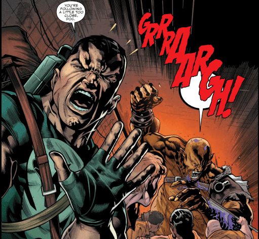 The first issue of War of the Realms: Punisher established the characters of Dr. Baldwin and the criminal Ferrante, but the first does nothing and the other just betrays Frank on the last page. Duggan’s writing of Frank is one dimensional too with the exception of a touching, sepia colored scene where he remembers being stuck in Lincoln Tunnel traffic with his wife and kids during a happier time. Punisher is there to kill and make gritty faces. His using lighter fluid, lighter, and a grenade to blow up a troll is cool, but this story continues to feel unnecessary because Frank is written much better in the main series and the Dark Elf Realm tie-in. The concept of a vigilante teaming up with the criminals he usually executes to protect innocent people is intriguing, if a little 1970s. However, Duggan, Ferreira, and Poggi can’t pull it off on the page so War of the Realms: Punisher #2 earns an Overall Verdict of Pass.
