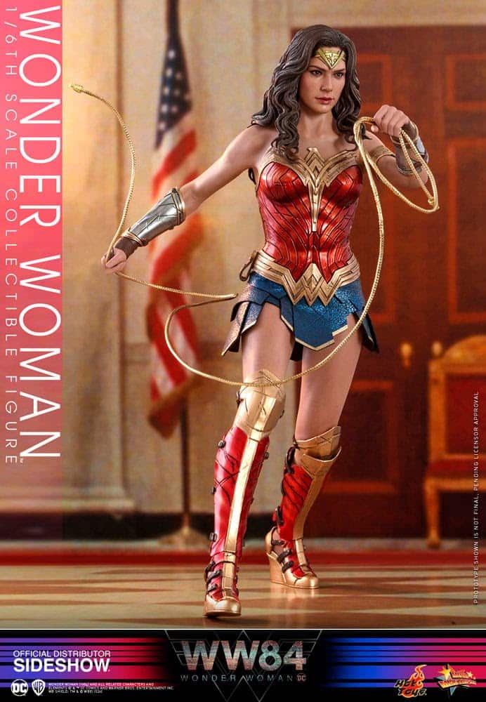 Inspired by the hit film Wonder Woman 1984, the Wonder Woman 1/6 Scale Figure features a new hand-painted headsculpt with a detailed likeness of Gal Gadot as Wonder Woman. The figure has over 17 points of articulation, including enhanced flexibility at the shoulders, and is dressed in a glossy blue and red battle suit with red and gold battle-damaged boots. She also wears her iconic tiara and the Bracelets of Submission. Wonder Woman is ready to dispense justice with her Lasso of Truth, and also comes with magnetic sparkling effects which can be attached to her Bracelets of Submission.