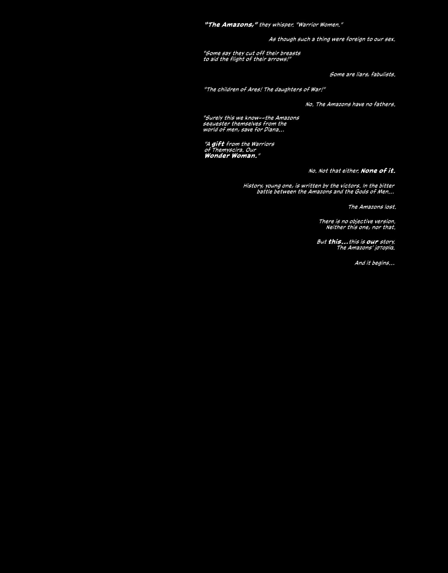 A Homeric epic of the lost history of the Amazons and Queen Hippolyta’s rise to power. Featuring monsters and myths, this three-book saga spans history from the creation of the Amazons to the moment Steve Trevor washes up on the shores of Paradise Island, changing our world forever.