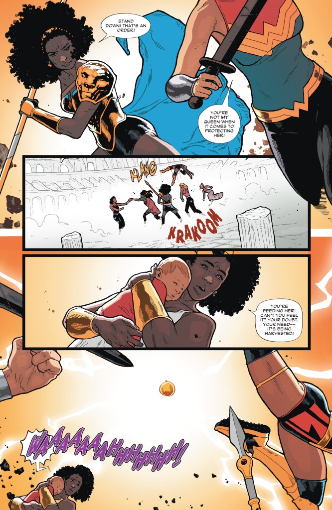 Wonder Woman #30 (DC) – In the conclusion to her two part arc, Stephanie Williams shows her command over Wonder Woman’s robust supporting cast putting both their strengths and flaws on display as they battle Eris for Lizzie. She and Jeff Spokes make one hell of a team as insightful dialogue pairs with muscular action. Spokes’ colors also set the tone for each stage of the fight with Eris. It’s so cool to see Nubia, Philippus, Diana, Yara, Donna, and Cassie as three dimensional characters in just 40-odd pages as Williams and Jeff Spokes bring dense, old school type storytelling, but loses the old school attitude. Plus the text and visuals complement each other nicely, and Spokes kicks ass at drawing powerful, loving women. Overall: 8.8 Verdict: Buy