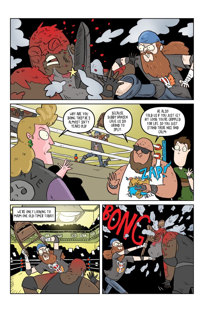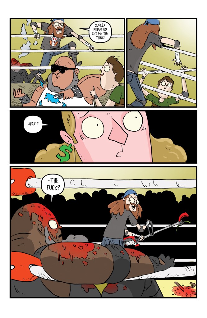 Wrestle Heist #4 (Image Comics) – Kyle Starks‘ style, with colors by Vlad Popov, is on full display here with a gonzo issue where things go so right and so wrong at the same time as the heist begins. We learn far more about the evil promoter in a series that brings the fact and fiction together for a world we want to see more of. This is one you can appreciate at the surface level though those with wrestling knowledge will love it more. The backmatter is absolutely fantastic as always. Another great issue in a series that’s a hell of a lot of fun. Overall: 8.25 Verdict: Buy