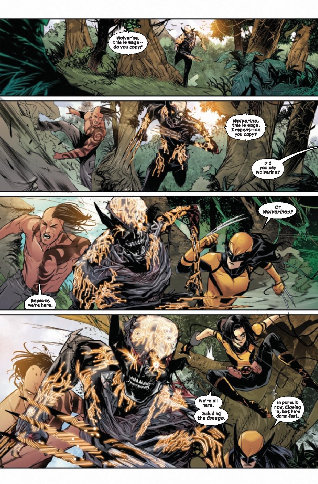THE FUTURE CRASHES INTO THE PRESENT WITH THE SHOWDOWN YOU’LL HAVE TO SEE TO BELIEVE! WEEK 10—It’s WOLVERINE versus WOLVERINE?! With the time-traveling mission behind him, the truth will be revealed. But who—or WHAT—will remain as the OMEGA WOLVERINE?
