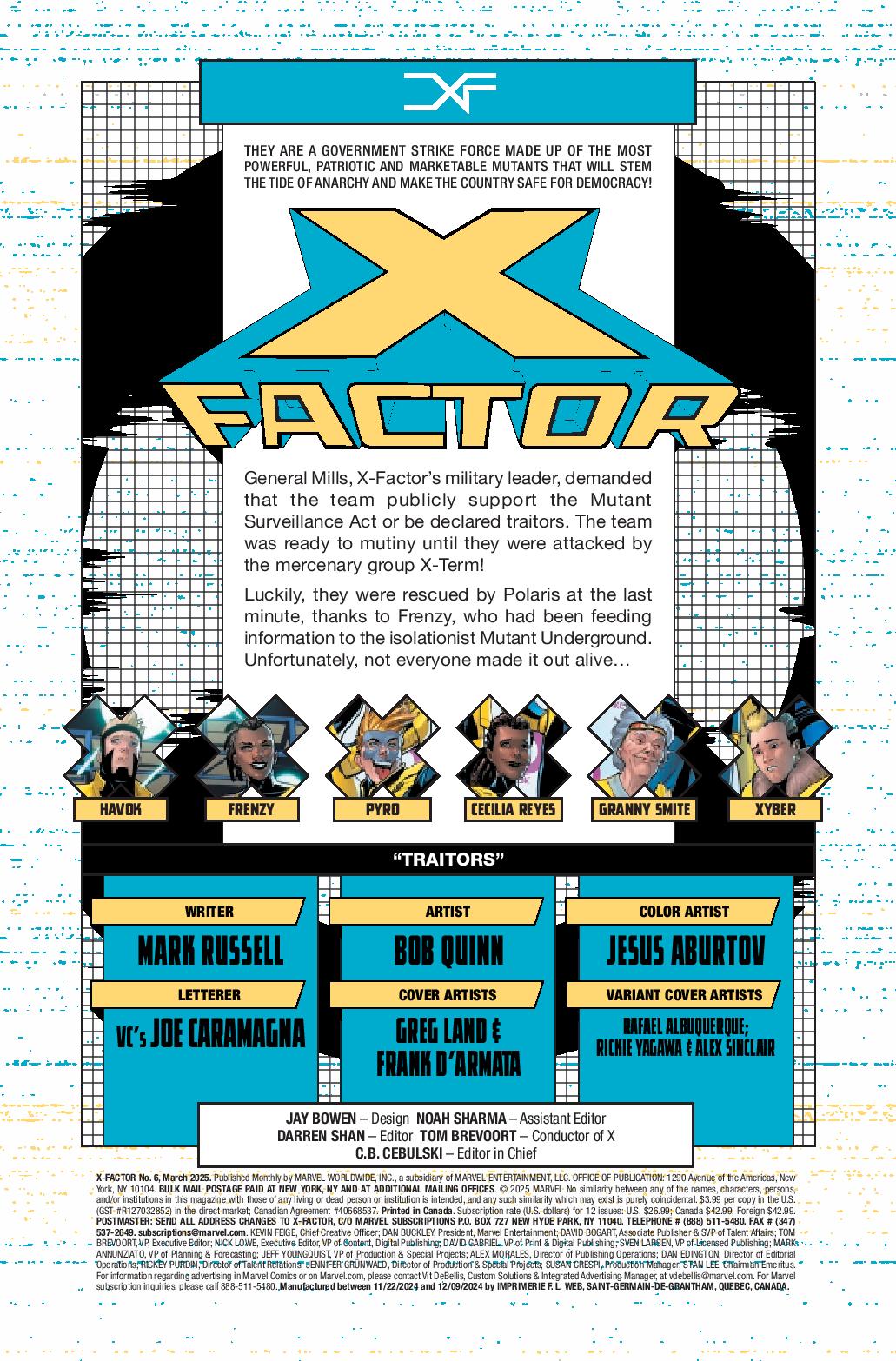 (W) Mark Russell (A) Bob Quinn (CA) Greg Land Rated T+ In Shops: Feb 19, 2025 SRP: $3.99