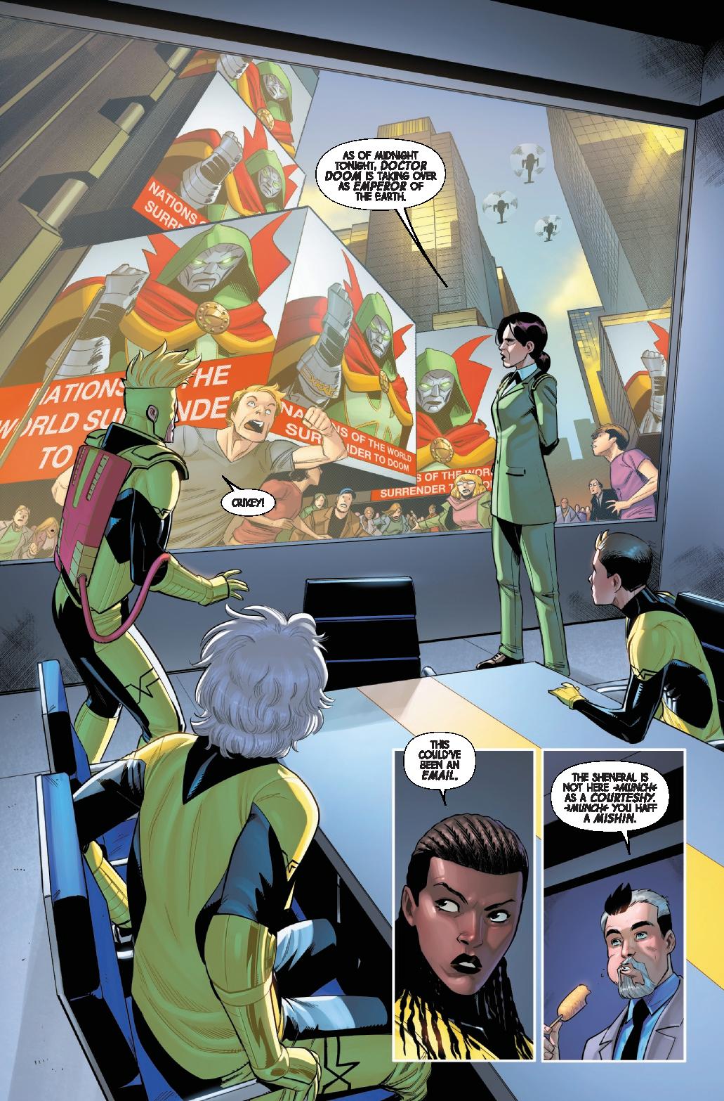 Angel returns to lead X-Factor, just as Emperor Doom will lead the world to glory! But, in the utopic domain of the magnanimous Doom, what could X-Factor’s mission be? And what could bring them to a small nation on the island of…Genosha?!